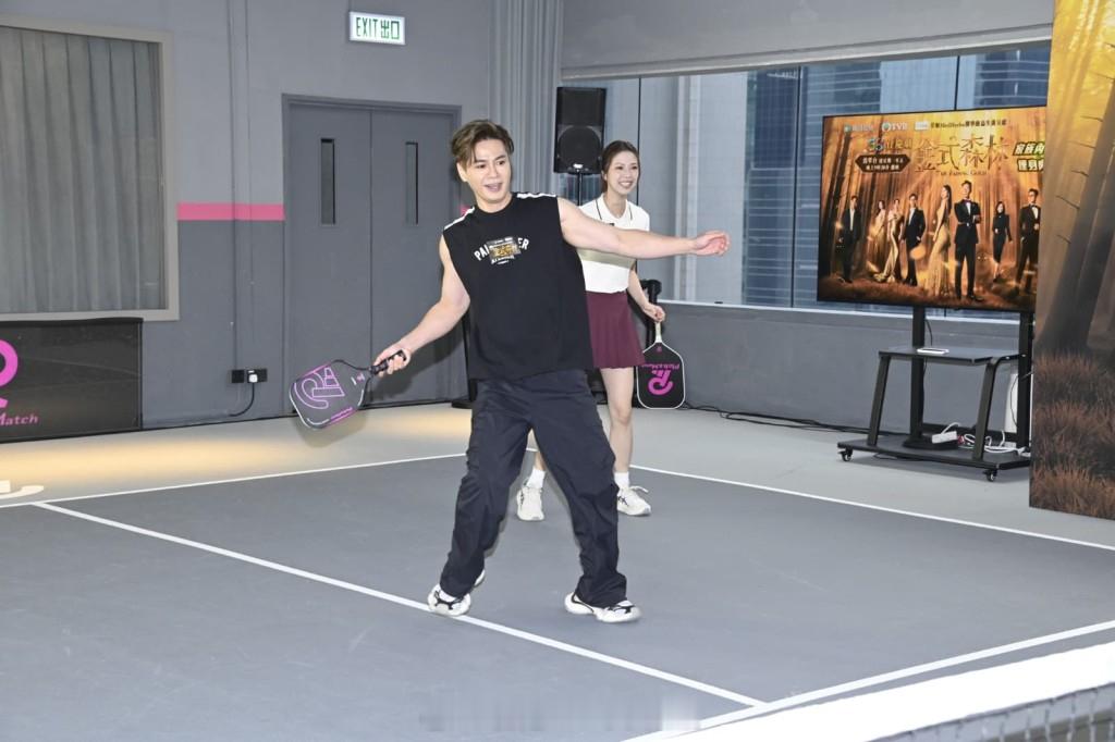 陈晓华、罗子溢、郭柏妍、何广沛、陈星妤、陈浚霆、庄子璇、罗天宇、陈庭欣等今日(1日)出席TVB台庆剧《金式森林》宣传活动,众演员分组对决匹克球(Pickleball)。