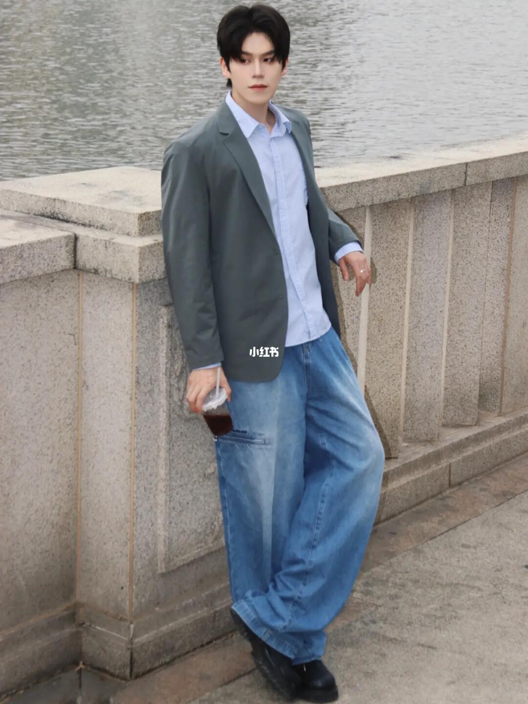 最近很喜欢穿西装出行 尤其是在早春的时候 搭配衬衫很适配! 今日份的OOTD有点意思 简约大方的颜色 搭配阔腿牛仔裤 多了一些些慵懒休闲感 无论是日常通勤穿还是休闲穿都很好搭配
