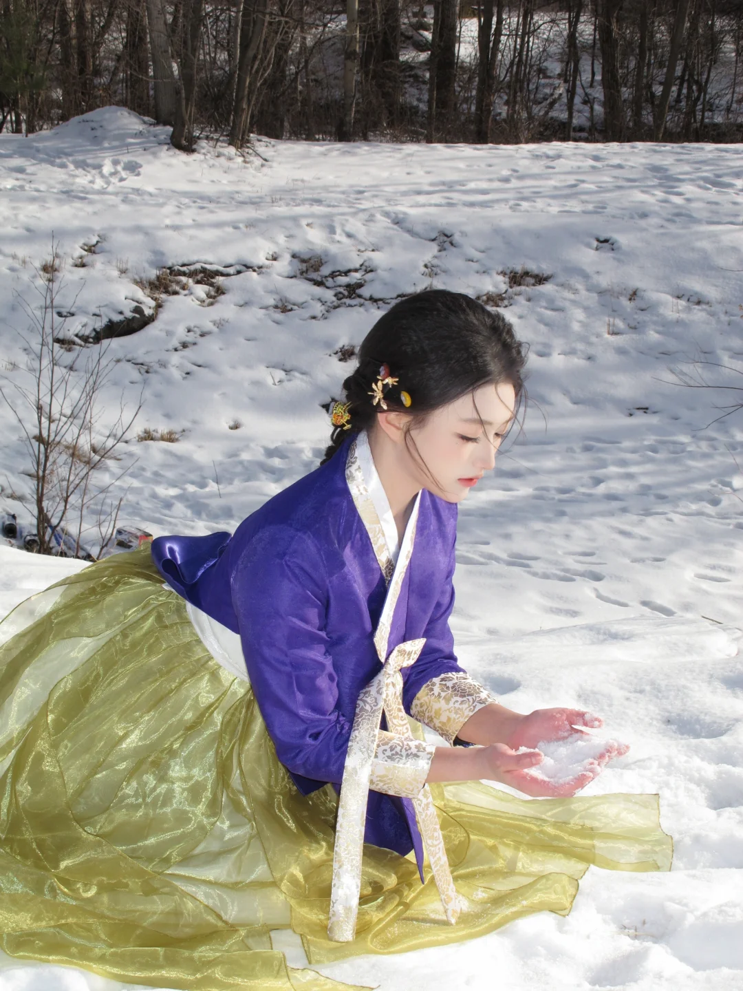 雪地拍照小心机:把战国袍穿在身上