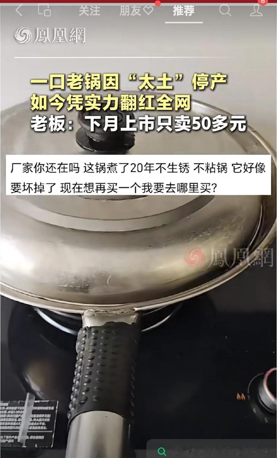 这口锅,婆婆用过,媳妇接着用,锅底都磨出光来了,还没坏。 没人催,没人喊,突然全网都在问:这锅,咋不生产了? 厂家没料到,真有人为一口锅集体“请愿”。 不是因为贵,是它不掉渣、不涂层、不忽悠。 50块钱,用一辈子,比那些三年就裂的“网红锅”实在多了。 现在它要回来了,加厚了,还是那个价。 不是情怀,是中国人早就懂的事儿—— 好东西,不用宣传,用着用着,就传成了家当。 国货不是靠口号活的,是靠一口锅,熬了四十年的饭,熬出来的。