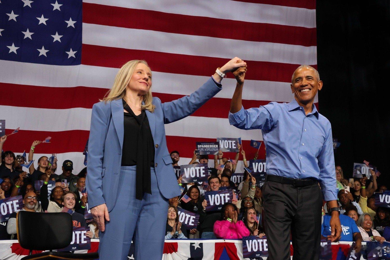 Obama在Virginia州长选举的竞选活动上讲话:他们一直忙着打击异己、集中权力、捞取钱财…演戏给大家看:抓非法移民、打压变性人…发布各种荒谬的视频,总统戴着皇冠开飞机、往示威人群头上喷💩 ~都是转移注意力,因为他们没为普通人做任何事,大家关心的物价、就业、医保…他们没花任何精力去解决这些问题,而是把一切都归咎于DEI