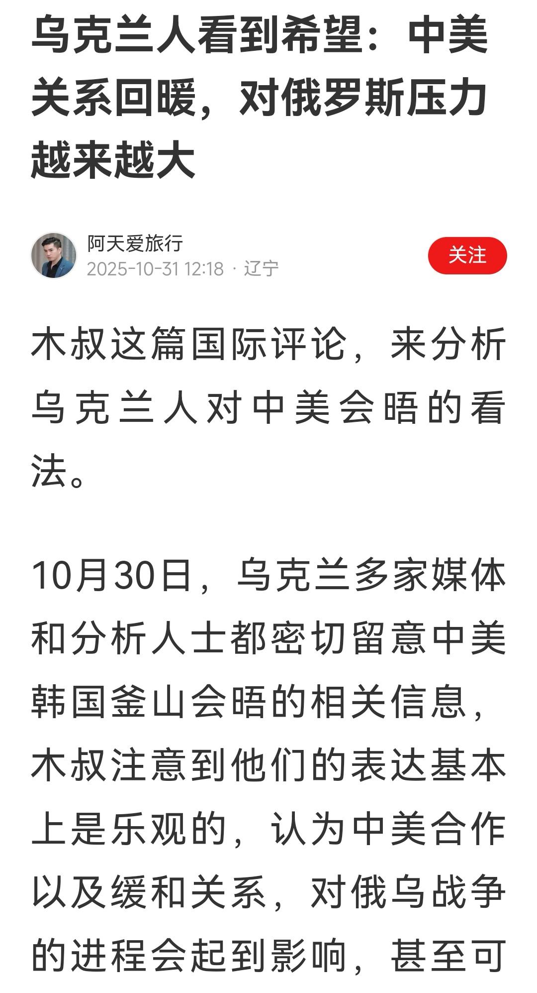 中美关系好了,对世界稳定是重要保证,必然也会对结束俄乌冲突发挥作用。