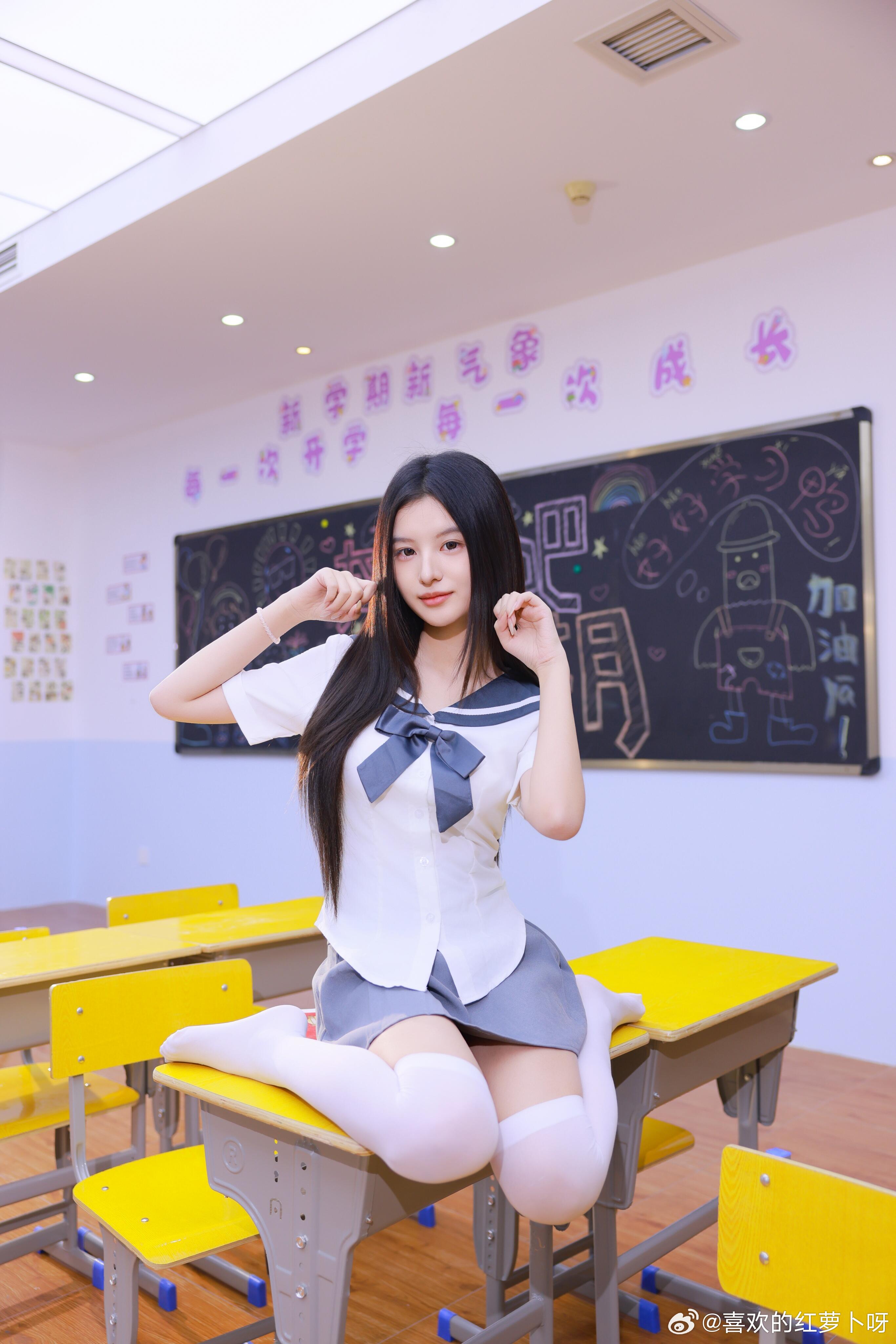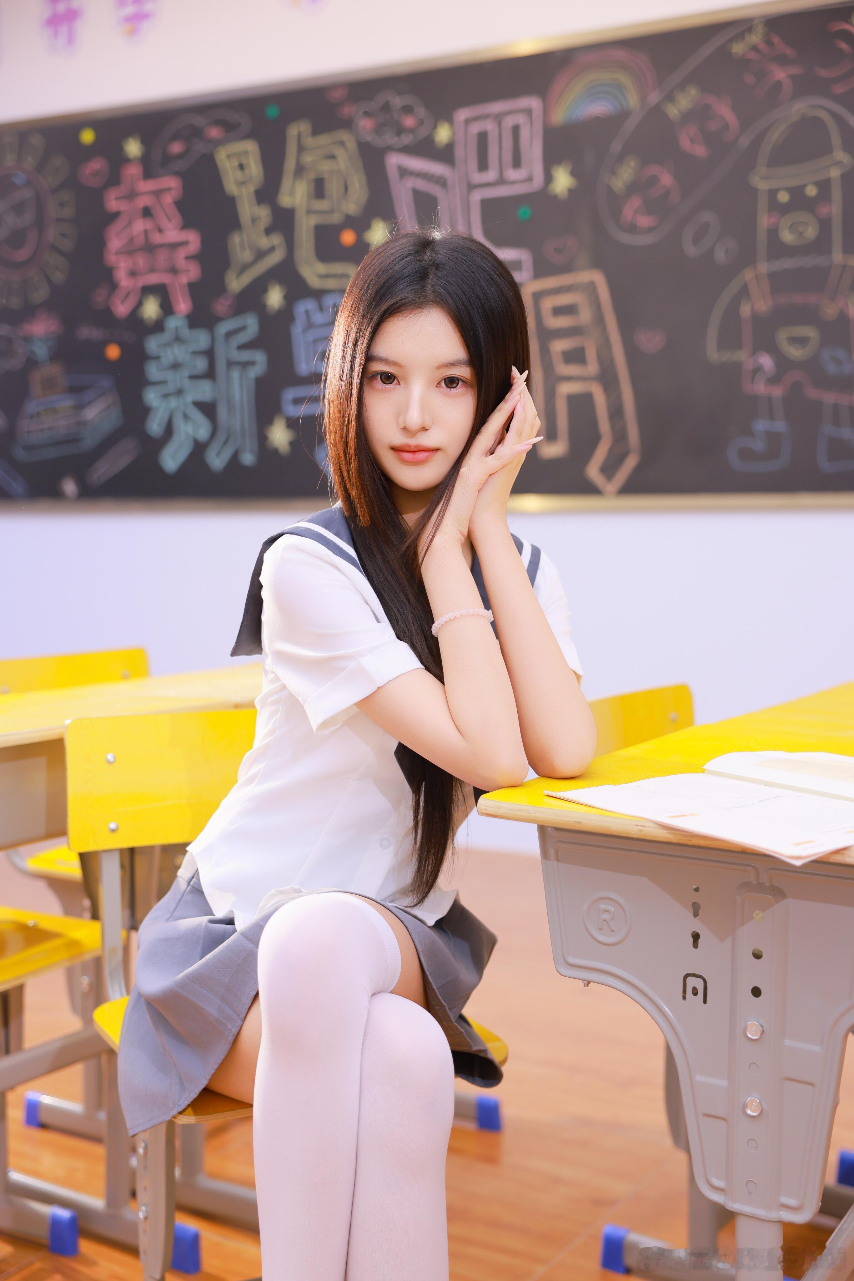 学妹陈都灵清纯校园风装扮美腿穿短筒白丝