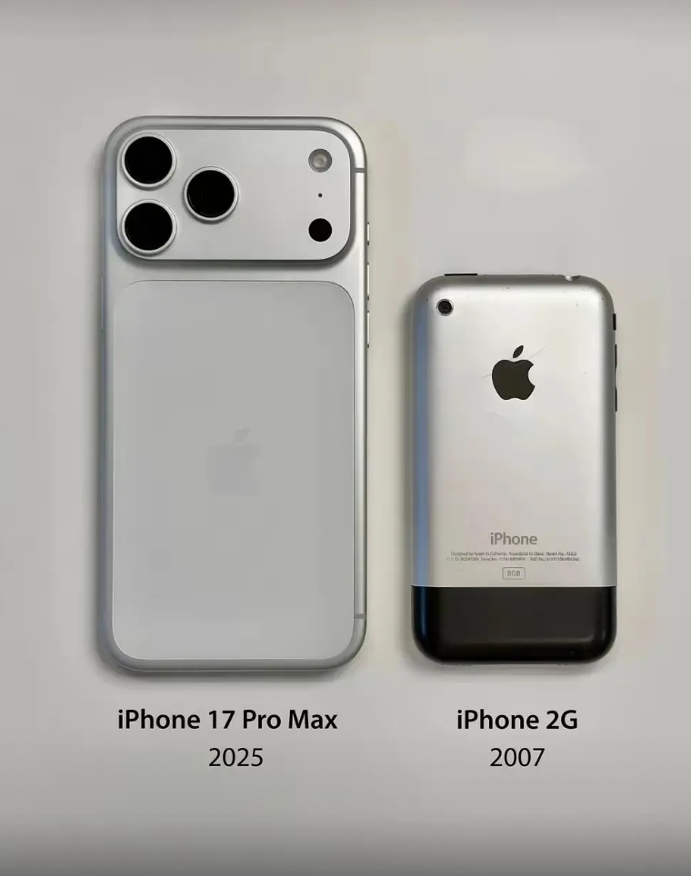 2007年的苹果和2025年的苹果。唯一不变的就是logo,苹果的logo在果粉眼里代表了一切,只要有一个苹果logo就会买,其他随便。苹果4和4s才是苹果的工业设计美学巅峰之作,后代的机型都是在走下坡路。只能说这个时代真的非常垃圾,一切都在降级,包括审美。 还有一个直观的感受,当年一代的时候觉得这个手机怎么这么大,使用起来会不会不方便,相比较现在的大了这么多,反而觉得很正常了。