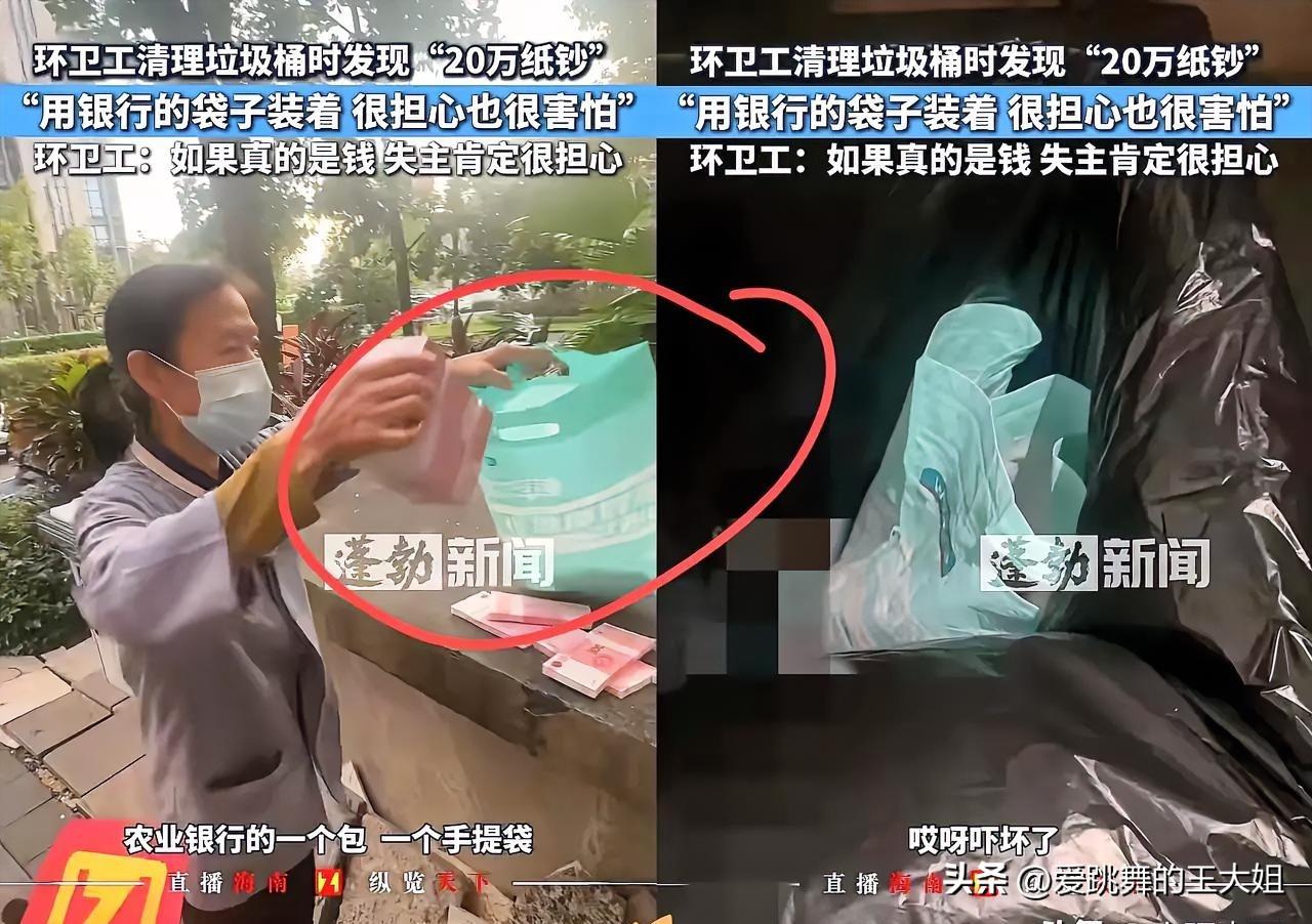 近日,海南海口,环卫工阿姨晚上下班清理垃圾时,发现垃圾桶中的有个农业银行的手提包,打开一看竟是20万纸钞,吓的阿姨赶紧报警,结果警察到场后,场面瞬间反转! 警察赶到现场仔细一看,那些看起来崭新的、捆得结结实实的“钞票”,根本就不是真钱,而是银行内部常用的点钞练功券。这种练功券虽然猛地一看和真钱很像,但在材质和防伪细节上跟真币完全不是一回事,就是给银行职员或者超市收银员练习点钞用的。环卫工阿姨当时心里肯定咯噔一下,白紧张了半天,不过她这种看到“巨款”毫不犹豫就报警的处理方式,真的特别对,特别负责任。 这种事情在海口好像也不是头一回了。搜索结果显示,今年3月,另一位环卫工人梁爱珠也遇到过几乎一模一样的情况,也是在路边发现一个印着银行标志的袋子,里面装着看似十万整的“现金”,结果核实下来同样是点钞券。为啥练功券会这么频繁地出现在街头巷尾的垃圾桶里,这本身倒是挺让人纳闷的。是有些人用完就随意丢弃,还是这里面可能牵扯到别的什么名堂,确实需要打个问号。 抛开“钱是假的”这个结果不谈,环卫工阿姨那一刻毫不犹豫选择上交的举动,那份诚实和担当,是千真万确的,特别珍贵。她们的收入并不高,面对一袋子看上去足以改变生活的“财富”,第一反应是物归原主,这种品德,值得我们每个人竖起大拇指。这也让我们看到,社会上绝大多数人对于这种诚信行为是由衷敬佩和点赞的,说明大家对善良和正直的追求从来没变过。 不过,这件事也让我们看到,现在很多新闻事件的发展路径都差不多:一个引人关注的起点(比如捡到巨款),然后迅速在网络上引发热议,接着出现一些质疑的声音,最后权威部门介入公布一个有时会出人意料的结果。网友们现在也练就了“火眼金睛”,事件一出来,不少人就开始琢磨哪里不对劲,比如为什么会有人把大量现金扔垃圾桶,现在随身带这么多现金本身就不太寻常。这种大众媒介素养和理性分析能力的提升,算是一个积极的信号。 这件事最终是个乌龙,但环卫工人的善良和责任感不应该被“练功券”这三个字所掩盖。我们在为这份朴素的善心感动的同时,或许也该想想,怎么才能更好地守护这份善良,怎么减少她们因为信息不对称而陷入尴尬甚至被骗的风险。真希望社会对环卫工人这群“城市美容师”能有更多实质性的关怀和保障,让好人有好报不止是一句安慰话。 各位读者你们怎么看?欢迎在评论区讨论。