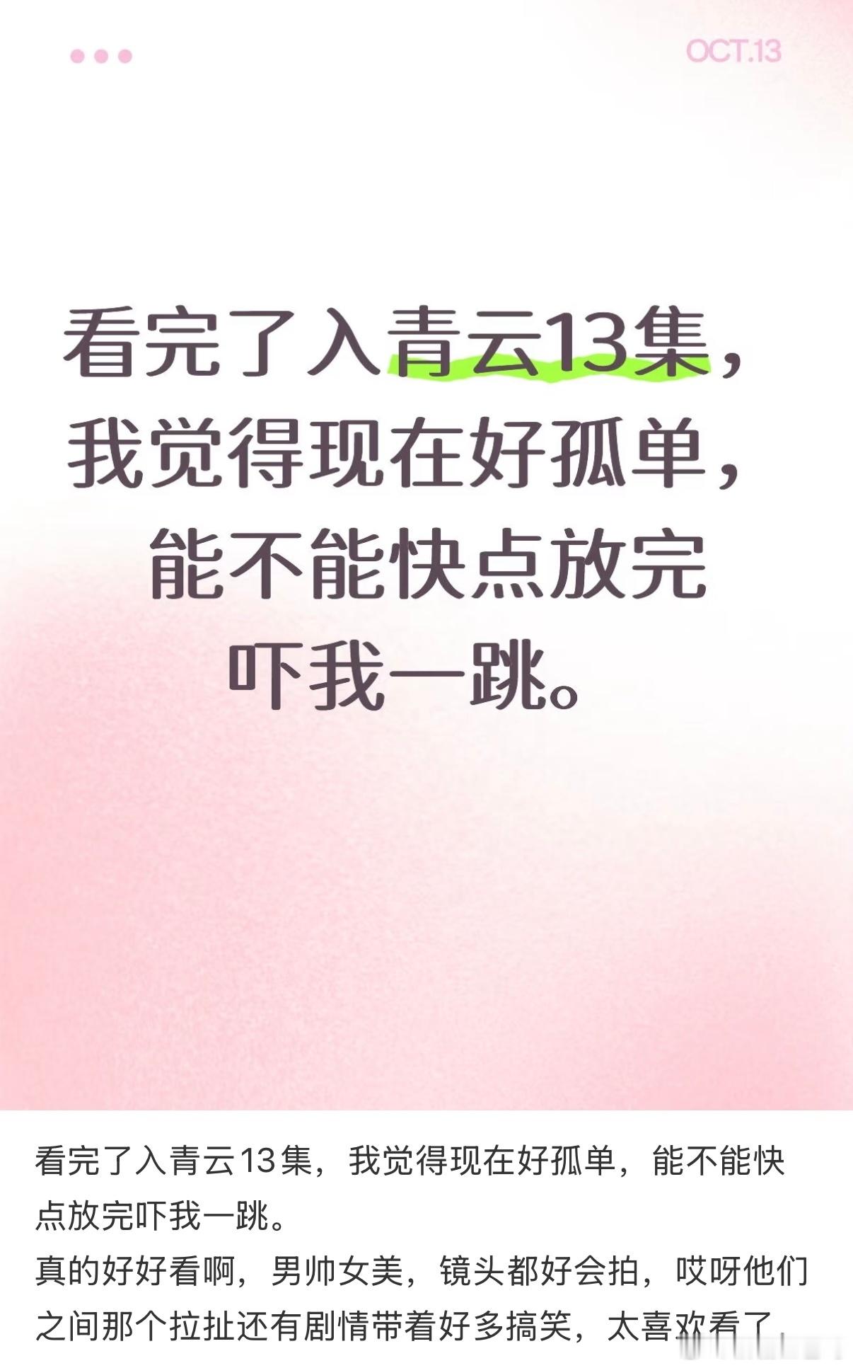 追完入青云今日收官 满是感动!👖心智的剧很温暖,十月黑马仙侠陪着我度过难熬的日子,小侯噜噜把角色演得鲜活,永远爱这部剧! ​​​