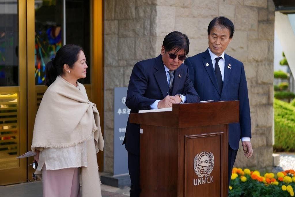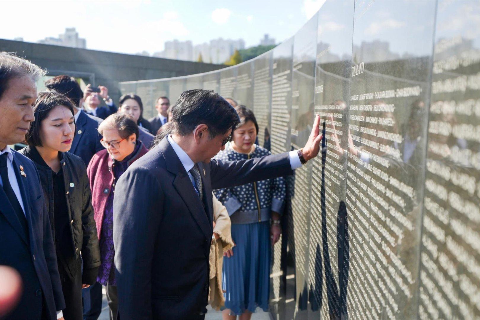 今天,菲律宾总统小马科斯在韩国釜山联合国纪念公墓访问期间,悼念在朝鲜战争中阵亡的菲律宾和外国士兵。