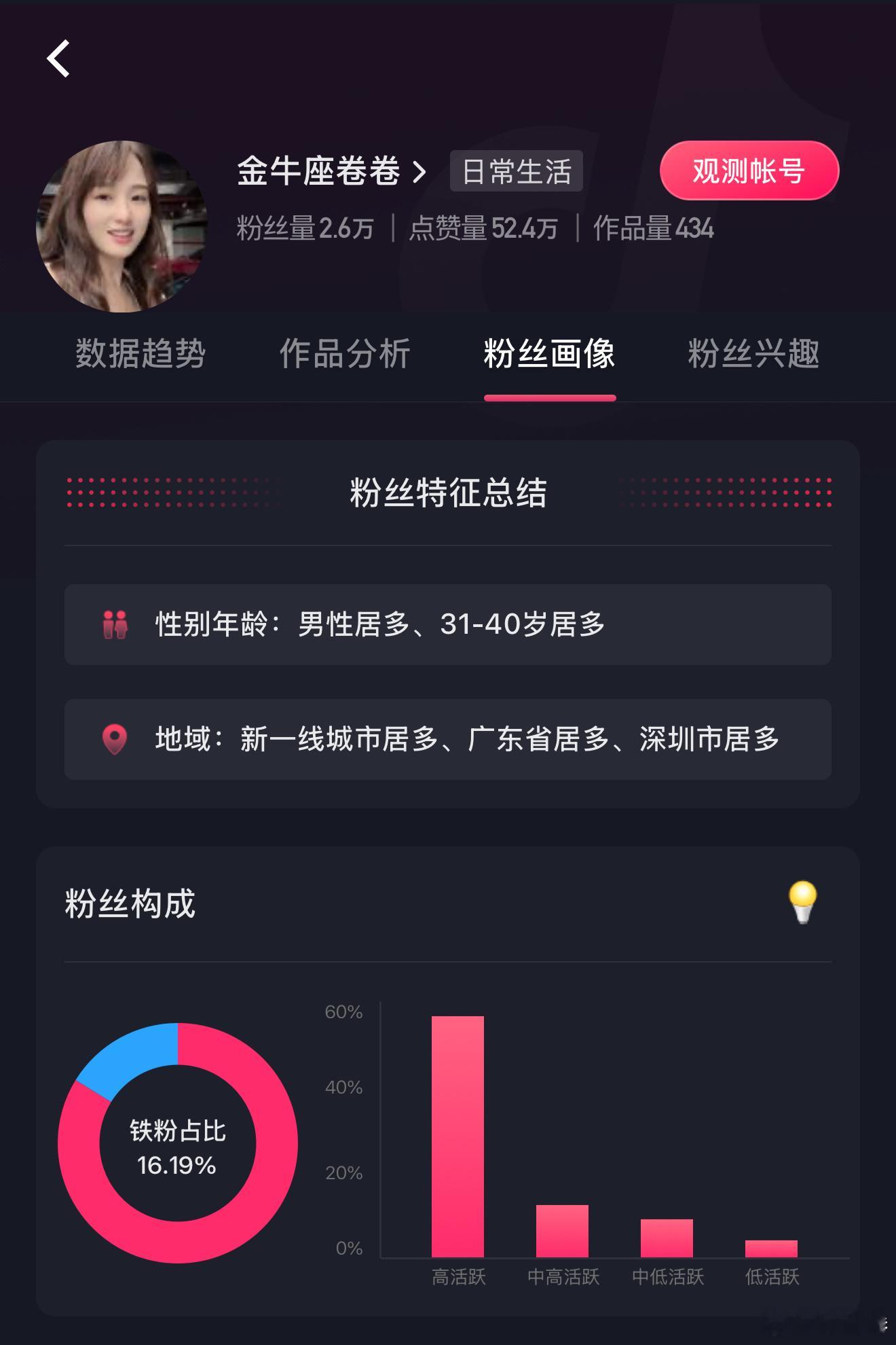 我抖音5个号的粉丝都是30到40岁的男性为主,我又不擦边,你们关注我干嘛[污]我要女粉丝[挖鼻]