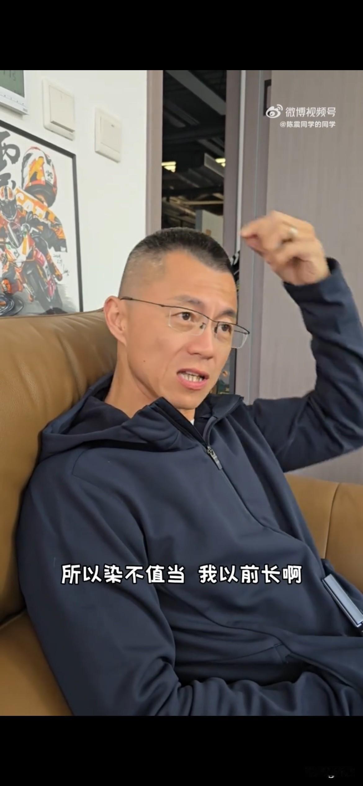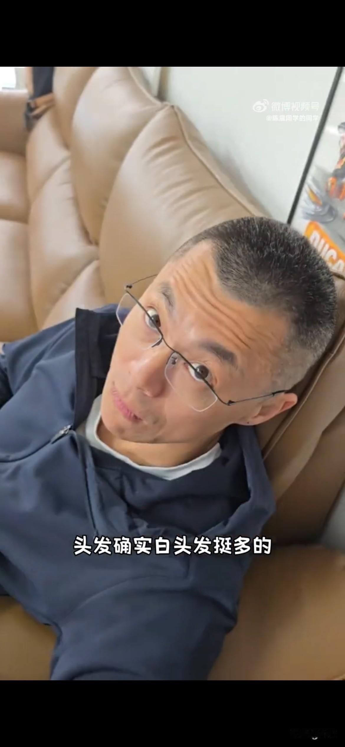 陈震顶着一头白发 回应为什么不染? 今天下午,陈震同事对着他的脑袋拍了一圈,发现才40多岁出头的他,头发其实真的已经白的差不多了,! 所以这个同事就问他,为什么不把头发染了,他表示自己在社交网络上,经常看各种各样的评论,尤其是各种各样的私信太多,导致自己的压力很大,这可能是白头发的原因之一! 咱俩还有一个更重要的原因就是毕竟他是八二年的人,40多岁长白头发也很正常,他认为自己也不是颜值博主,所以没必要经常染,再加上自己经常出差头发长得很快,基本上每周就要打理一次,所以长期染也不好,索性每次就剪短一点。 有人说可能是他长期生酮饮食有关系,毕竟他不吃任何碳水,天天都吃各种肉,虽然他的身体没什么短期的不良反应,但是这样到底合不合理,每个人还真的不一样,不过,他看上去一点也不在乎。