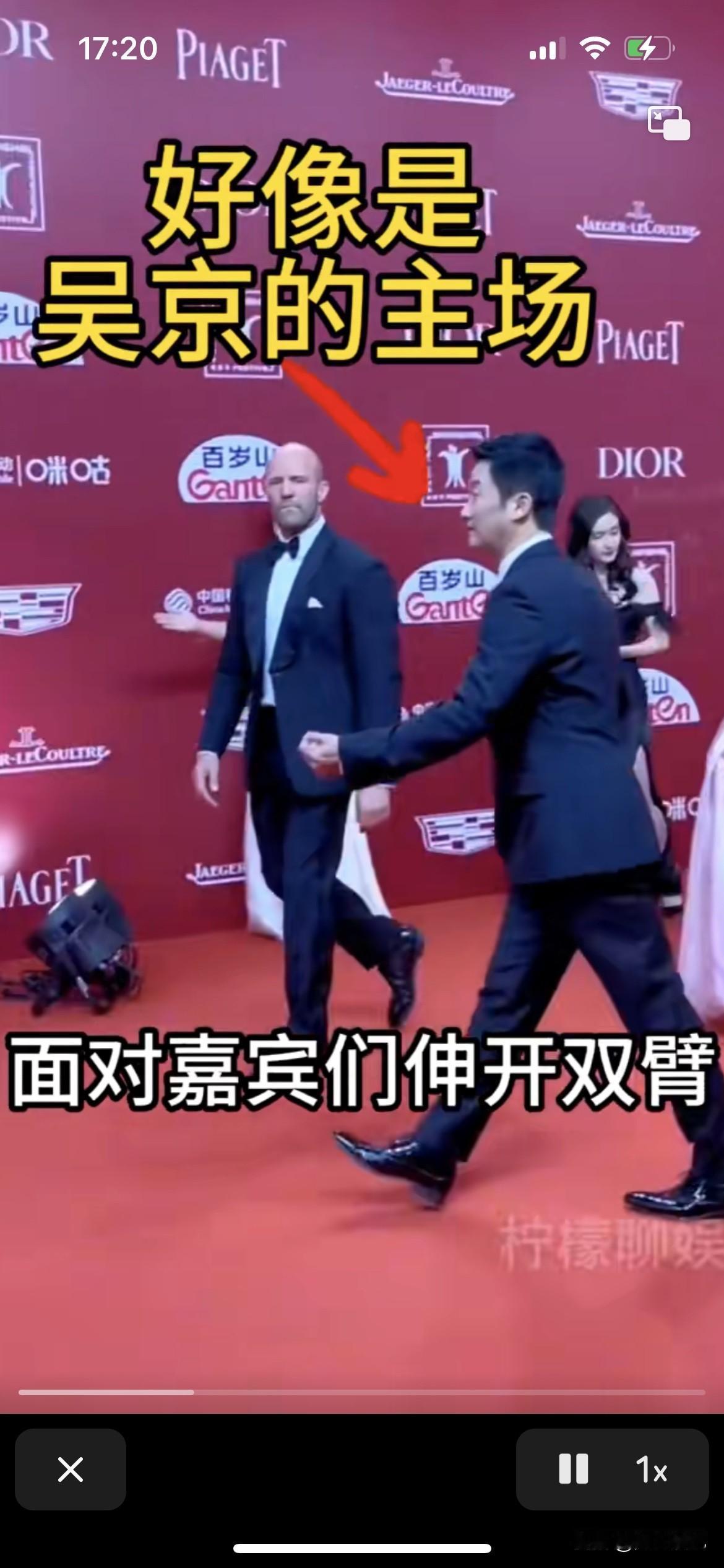 吴京老师想跻身进入一个国际范,自己认为自己是国际超一线明星了,杰克斯坦森,这次叫风度,根本不需要去巴结谁?很自然的。 之前很喜欢吴京,后来他走军人通道后,飘了,戏里戏外都在演,如今变成了反感,年轻的时候,吴京还是比较好的,杀破狼,和那个当兵的电视剧,现在有点飘啦。