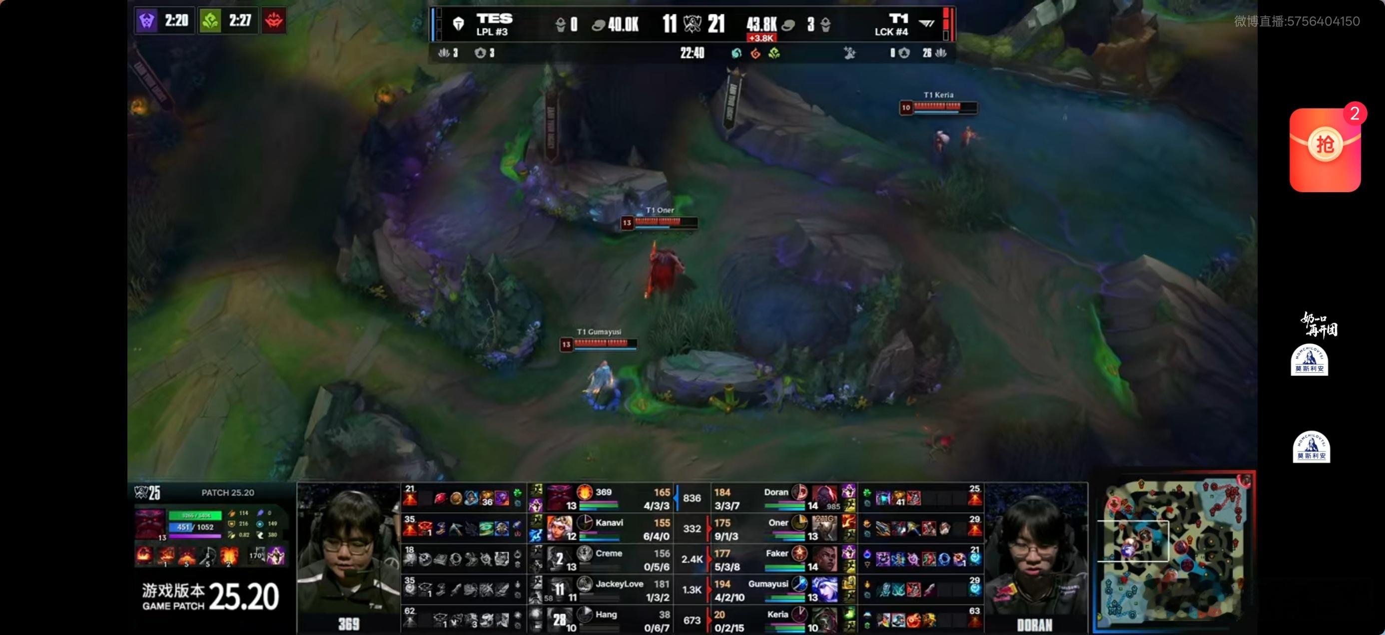 T1对战TES局势一边倒啊,T1还是太强了,双方对于实力差距有点明显。