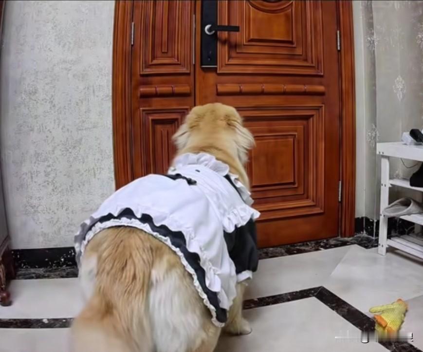 在监控画面中,这段日子我一直加班,狗狗等我等得焦急万分。听到我上楼梯的脚步声,它守在门口眼巴巴地盼着我开门。怎料外面下起了雨,我回来是拿雨伞的。我跟它说公司聚餐脱不开身,让它在家乖乖等着。狗狗很是无奈,只好又在原地等着,最后趴在地上守着。 下班状态