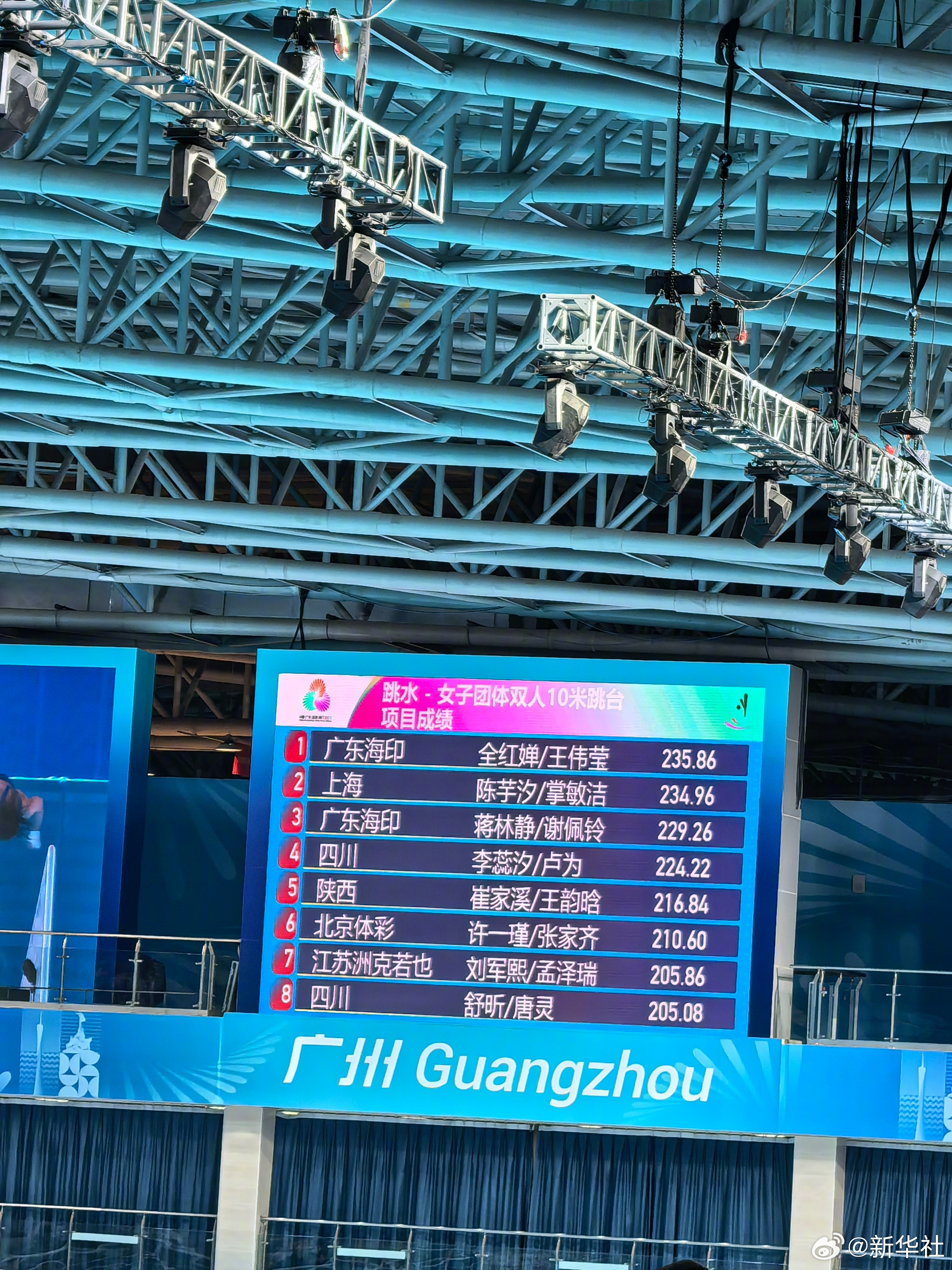 #全红婵十五运开门红#【祝贺!#全红婵复出首战告捷#】2日,第十五届全国运动会跳水项目在广州拉开帷幕。奥运冠军、广东队选手在女子团体双人10米跳台比赛中搭档王伟莹出战,夺得第一! #全红婵陈芋汐携手新搭档出战#