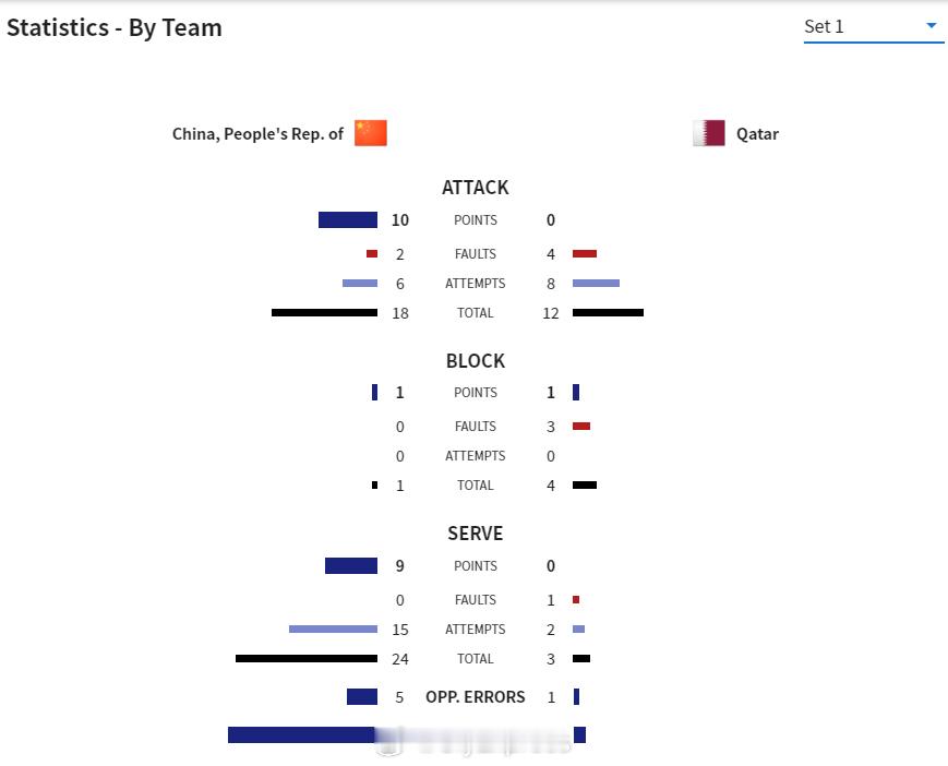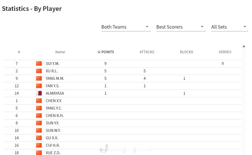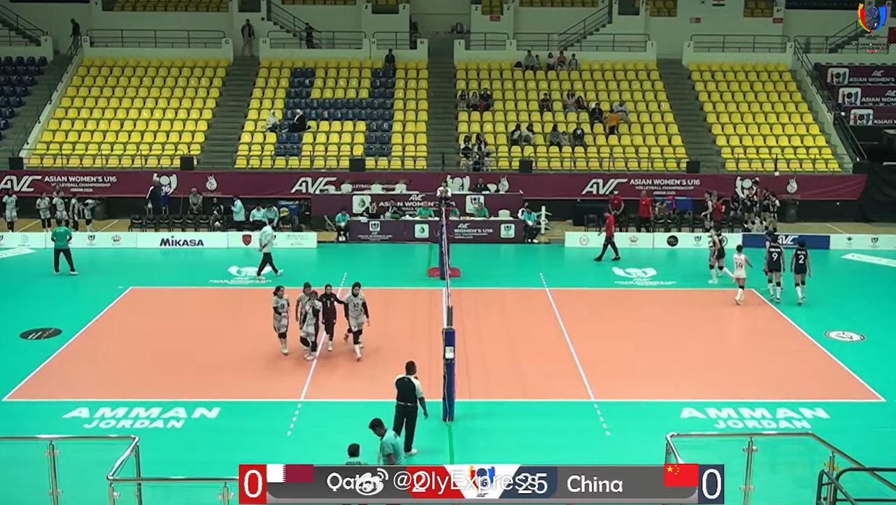 国际排坛动态 U16女排亚锦赛中国vs卡塔尔,首局中国队1-2落后之后,对手失误追成2平,之后隋依妙23连发,中国队25-2拿下首局,隋依妙发球得到9分。