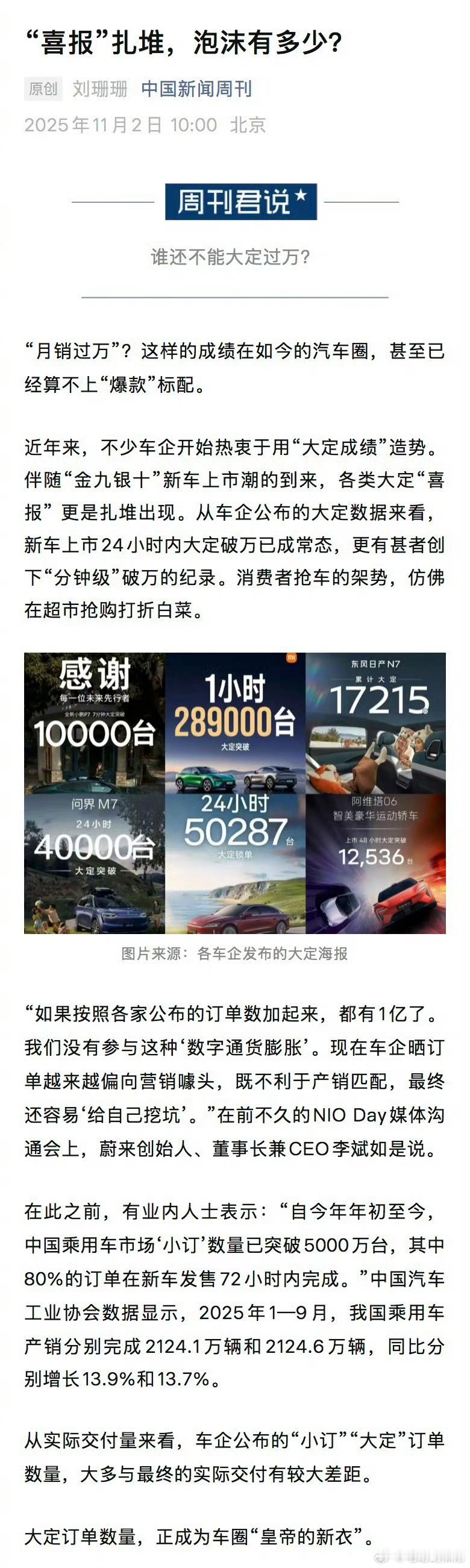 大定订单数成车圈皇帝的新衣多到不能行的各种订单数量,以及一直对不上的交付数量!