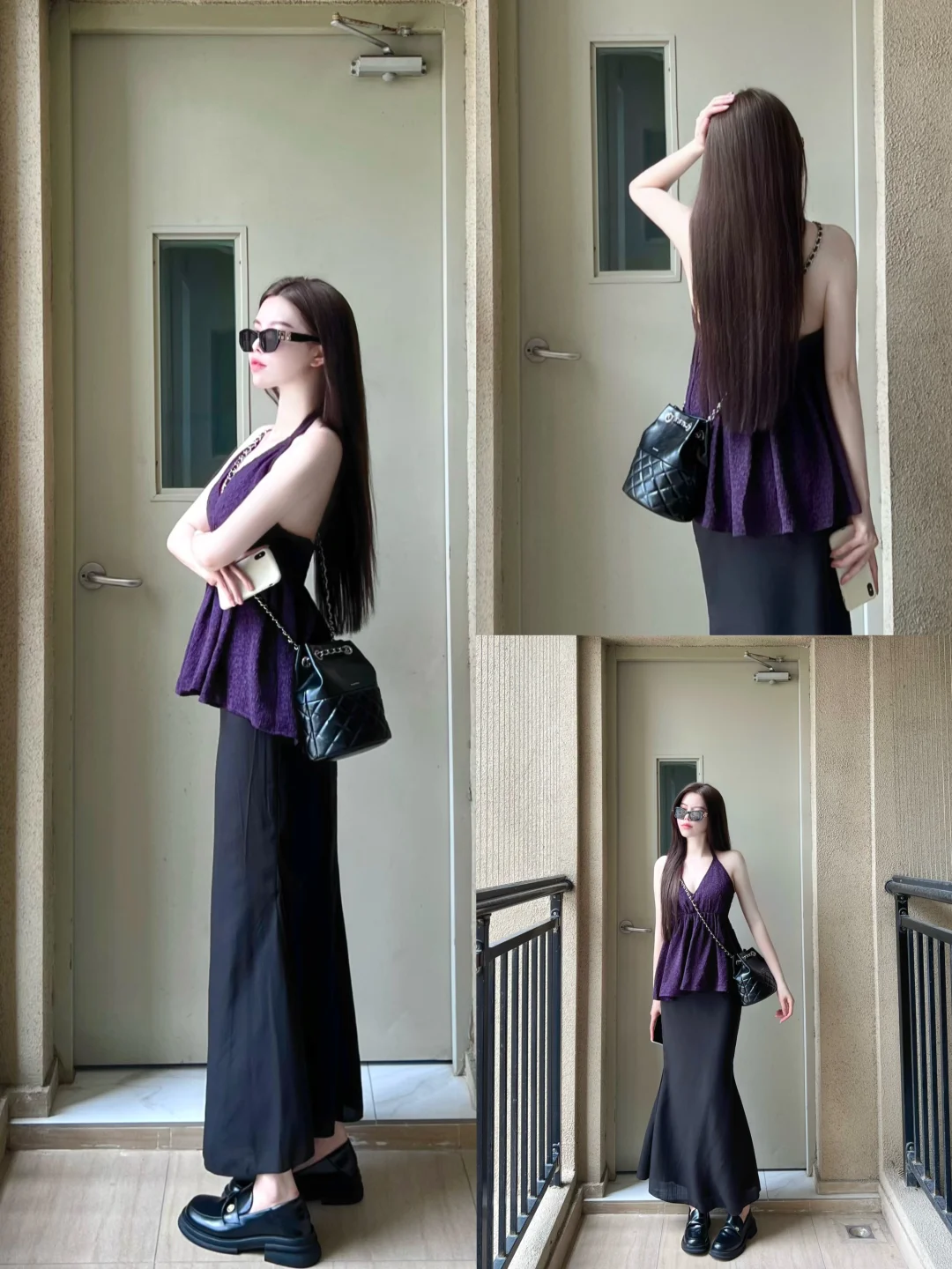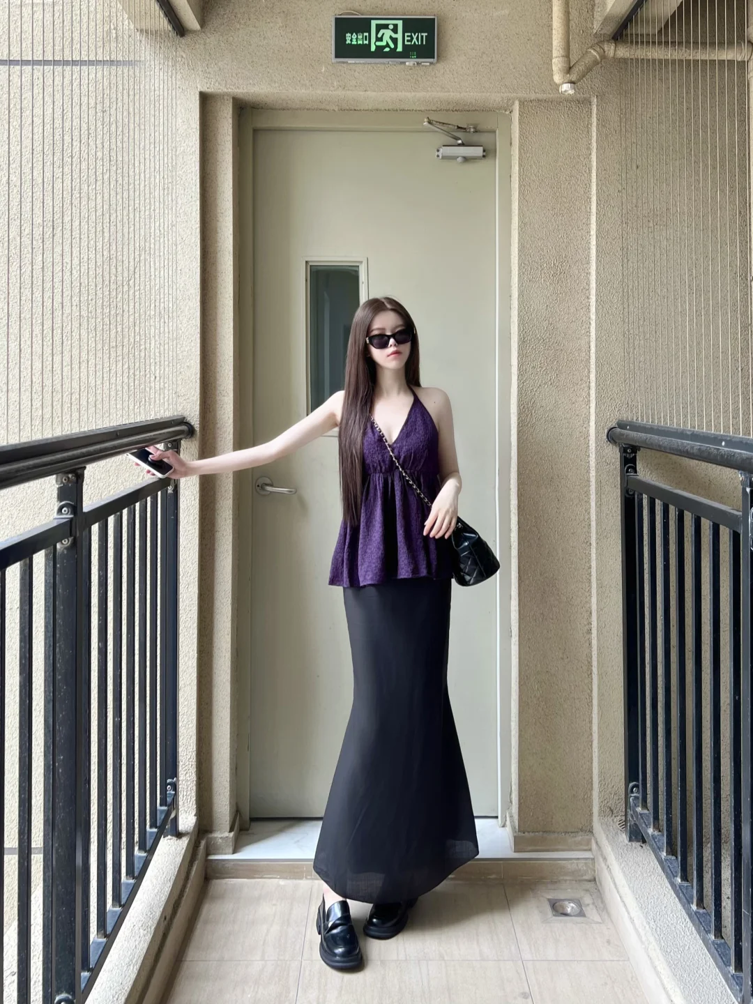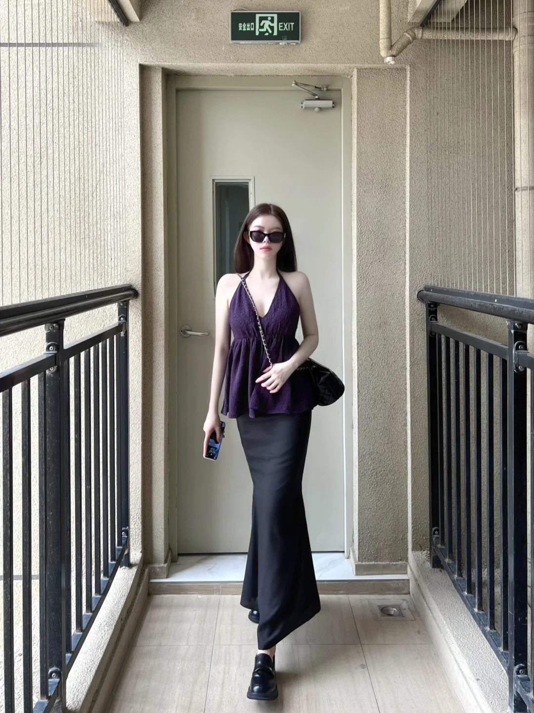 紫色系穿搭 鱼尾裙 清凉夏日穿搭 显身材穿搭 梨形身材 高个子穿搭