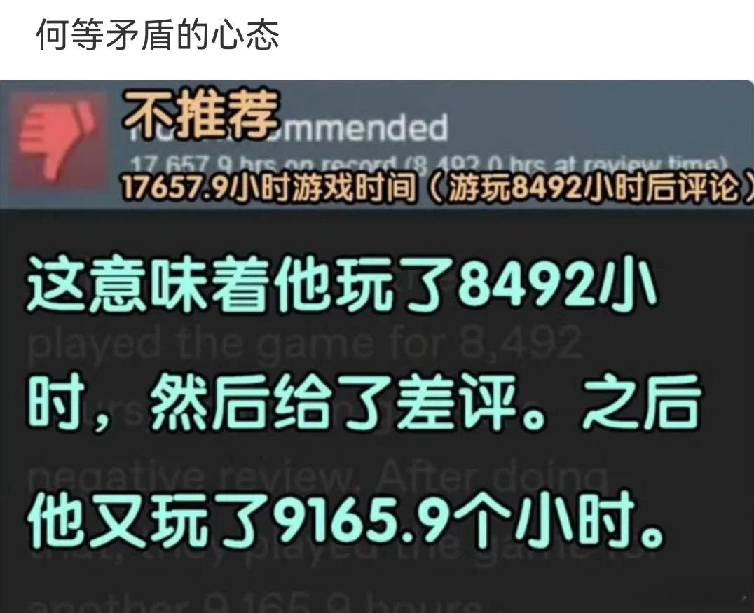 是什么样的游戏会发生玩了8492个小时后给了差评,但之后又玩了9165.9个小时这种情况?