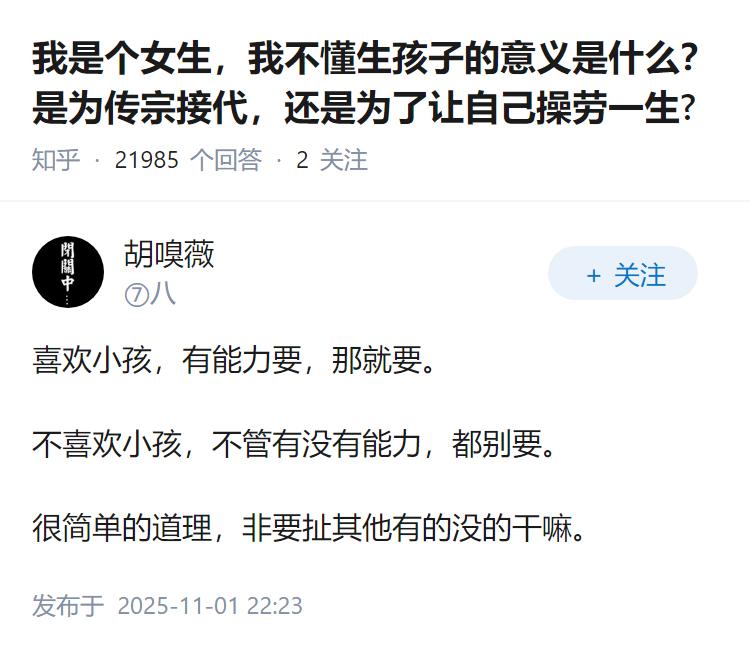 我是个女生,我不懂生孩子的意义是什么?是为传宗接代,还是为了让自己操劳一生?
