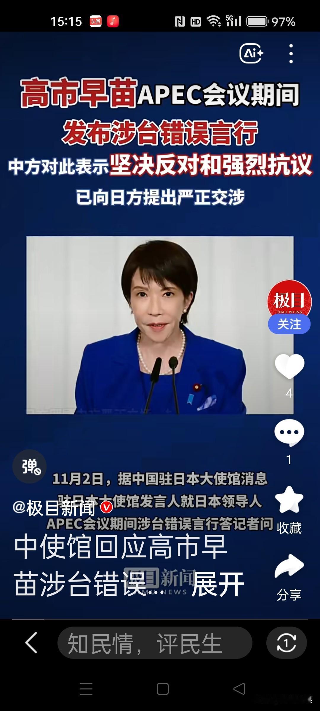 日本民众选出个‘政治盲’新首相?如此外交,像个没见过世面的家庭主妇?这是要把日本的面子、形象带到哪里?一上台,就踩中国的红线,发表涉台言论!中国一再敲打,故意的吗?在国际会议上,刷存在感,勾肩搭背他国领导人,那是什么场合,镜头可是面向全世界直播的!有损日本国家形象?