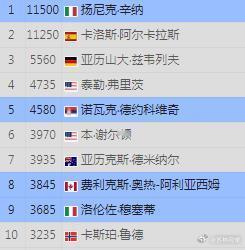 ATP最新排名