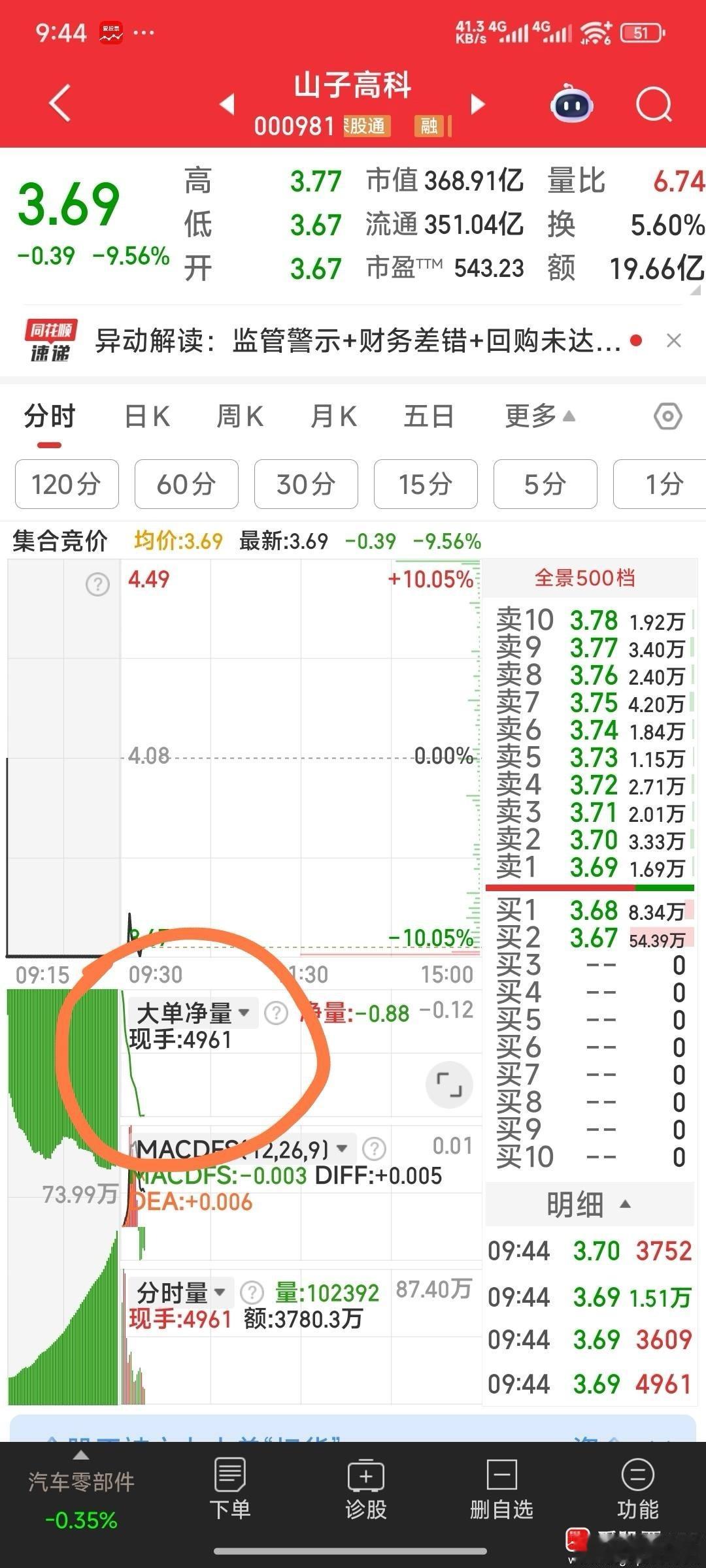 山子高科,大众公用,主力大单流出,出局为好