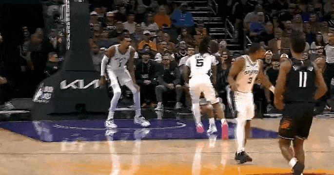 盖你没商量!文班亚马大帽阿伦! 在今天NAB常规赛马刺对阵太阳的比赛中,格雷森店阿伦突破后欲挑战文班亚马完成上篮得分,结果被文班亚马直接送上排球大帽! 这年头敢这么打文班亚马的可不多!只能说阿伦勇气可嘉!