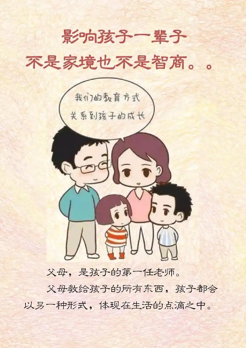 父母是家庭的基石,更是孩子人生的第一任老师,其影响如春雨润物,贯穿岁月且深入骨髓。 孩童时期,父母的言行是孩子认知世界的镜子:饭桌上的礼让教会尊重,困境中的坚韧传递勇气,争吵时的包容诠释温柔。他们的价值观悄悄植入孩子的成长基因,影响着未来的待人接物与抉择方向。成年后,那些刻在骨子里的习惯、藏在潜意识里的底气,多半源于原生家庭的滋养——被爱包围的孩子更敢奔赴远方,被理性引导的孩子更能从容破局。 父母的影响从不是轰轰烈烈的灌输,而是点点滴滴的浸润,它塑造着一个人的底色,也铺垫着人生的走向。一个家庭里,父母的模样,就是孩子未来的模样。