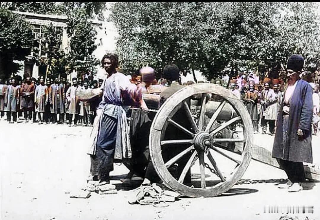 这张照片拍摄于1890年的伊朗(恺加王朝 ,Qajar Dynasty),这一幕简直让人难以置信。画面中,一名犯人被绑在大炮口,几个士兵正准备对他执行“炮决(blowing from a gun)”。很难想象,这一炮下去,人会变成什么样? “炮刑”这种恐怖的酷刑起源于16世纪,由印度的“伟大莫卧儿人”发明。相比中国古代的“五马分尸”,这种刑罚的残忍程度可以说是有过之而无不及。 据当时的历史文献记载,犯人通常被绑在大炮上,当大炮发出轰鸣后,上身和下身会完全分离。光是想象就让人毛骨悚然。不过,与“五马分尸”一样,一般的囚犯是“享受不了这种待遇”的,只有那些犯下极重罪行的人,才会被处以这种“殊荣”。