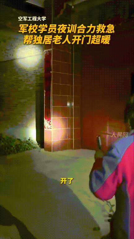 太暖了!空军工程大学的学员正在夜训,经过一户大院时看见老两口徘徊在门口也不进去,担心老两口有困难就上前问了问,没想到这两位独居老人是被锁外面了,还真的需要帮助。 老人说里面就是不小心别住了,不需要钥匙进里面就能打开,学员们了解后便开始围着门口找适合的地方打算翻墙进入。 奈何大院墙太高了,学员们搭人梯也没能翻进去,好在门口有一根长杆就是不太稳,几个学员在底下固定长杆,一名学员顺着杆子爬上去翻了进去成功将大门打开了。 等在门外的老两口看着门开了顿时感动的不行,拍着学员的肩膀不停道谢。 网友评论:“有困难找解放军”,这句话的含金量还在上升! 还有网友评论:这些年轻的学员,虽然还在军校学习,但已经把“为人民服务”的信念刻进了心里,用实际行动诠释着军人的使命与担当。 独居老人的生活中,难免会遇到各种突发情况,这次是被锁门外,下次可能是其他困难。而正是这些陌生人的善意,给了老人们最实在的温暖和安全感。 希望更多人能多留意身边的独居老人,在他们需要的时候搭把手,让这份温暖一直传递下去。 向空军工程大学的学员们致敬!你们的暖心举动,不仅温暖了两位老人,也让我们看到了军人的责任与担当,更让“军民鱼水情”变得更加深厚。