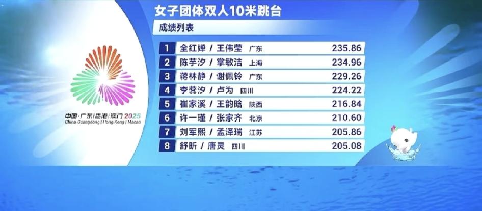 全红婵 陈芋汐 全运会跳水比赛三次成绩 全宝太厉害了 归来仍是王者 虽然身体发育了 但是实力依然在线 乐乐也非常棒 每一次都发挥很稳定 值得一提的是 张家齐其实表现也非常好 每一个女孩子都非常棒。