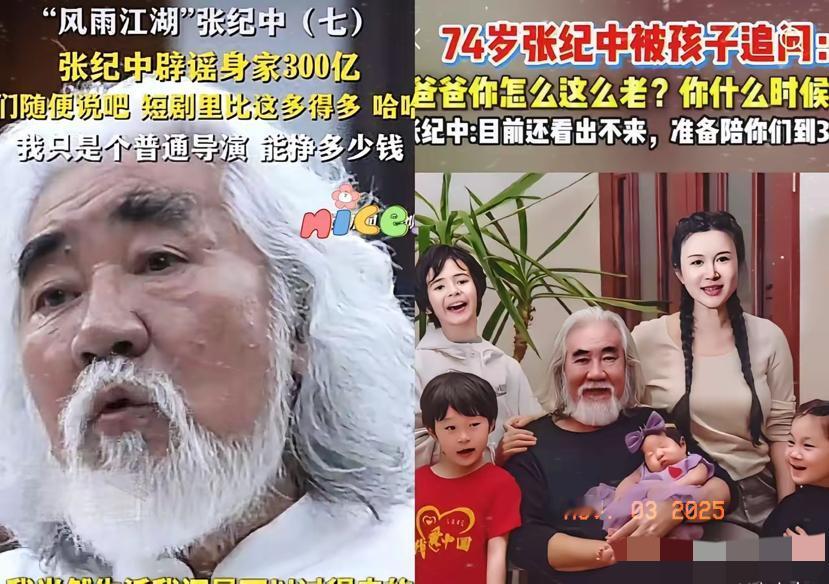 张纪中被儿子问“啥时候死”? 这哪是恶果,是高龄生娃的现实耳光! 74岁的他被孩子戳破年龄痛点,只能 强撑着说想陪到娃30岁——这意味着得活到104岁。 可哪是靠嘴硬就能撑住的?他早辟谣了300亿身家的传言,坦言自己就是普通导演,连私人飞机都买不起。 所以才放下导演身段去直播卖奶粉,不是跟风凑热闹,是真不敢失业。 影视行业寒冬下,他得拼命赚钱养娃,哪怕被说“老头子掉价”也不在乎。 大家看着他和娇妻杜星霖一派高雅,殊不知这份“清净”全靠奶粉销量撑着。 哪有什么老来得子的风光,不过是用晚年精力换孩子的成长保障。 高龄拼娃,拼的从来不是情怀是底气。你觉得他该这么拼吗?评论区聊聊!