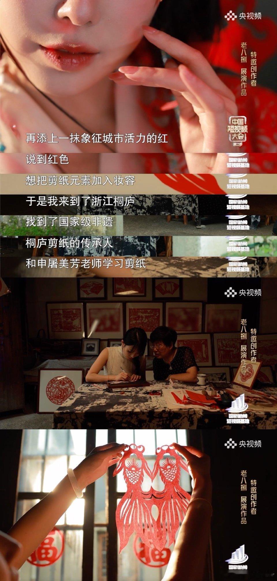 王冰冰眼睛都看直了 不是夸张,是真的愣住了:青瓷色做眼妆,非遗剪纸当衣饰,连市花都成了妆容的呼吸感,东方美原来可以这么鲜活、这么有力量。