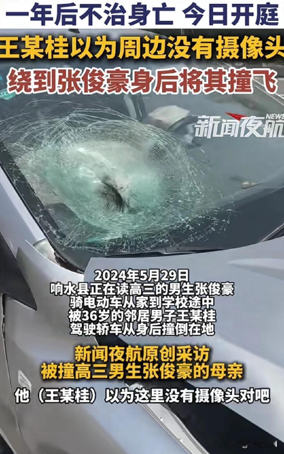 如果定性为故意,那保险是不管了! 张俊豪母亲:“他以为这里没有摄像头对吧,但是那个摄像头拍到他,他从那边过来,就是从这边绕到他(学生)后面,绕到他后面撞他的,当时你如果走前面撞的话,就是小孩子…知道…还能躲是吧,你可是走后面撞…他一点都不知道。” 近日,江苏响水县。高三男生高考前疑遭邻居驾车故意冲撞,一年后不治身亡,今日开庭,王某桂以为周边没有摄像头,绕到张俊豪身后将其撞飞。 看过一个案子,就是一个老太婆因为自己家孙子身体不好,就把邻居家的孩子杀了。