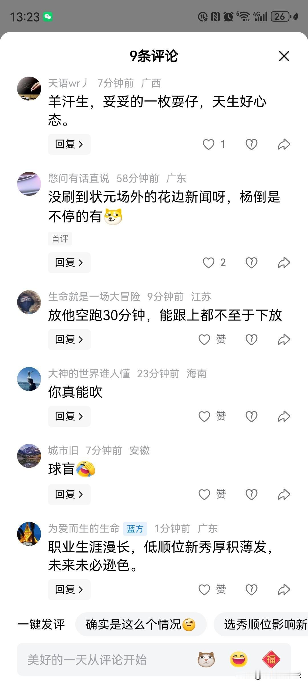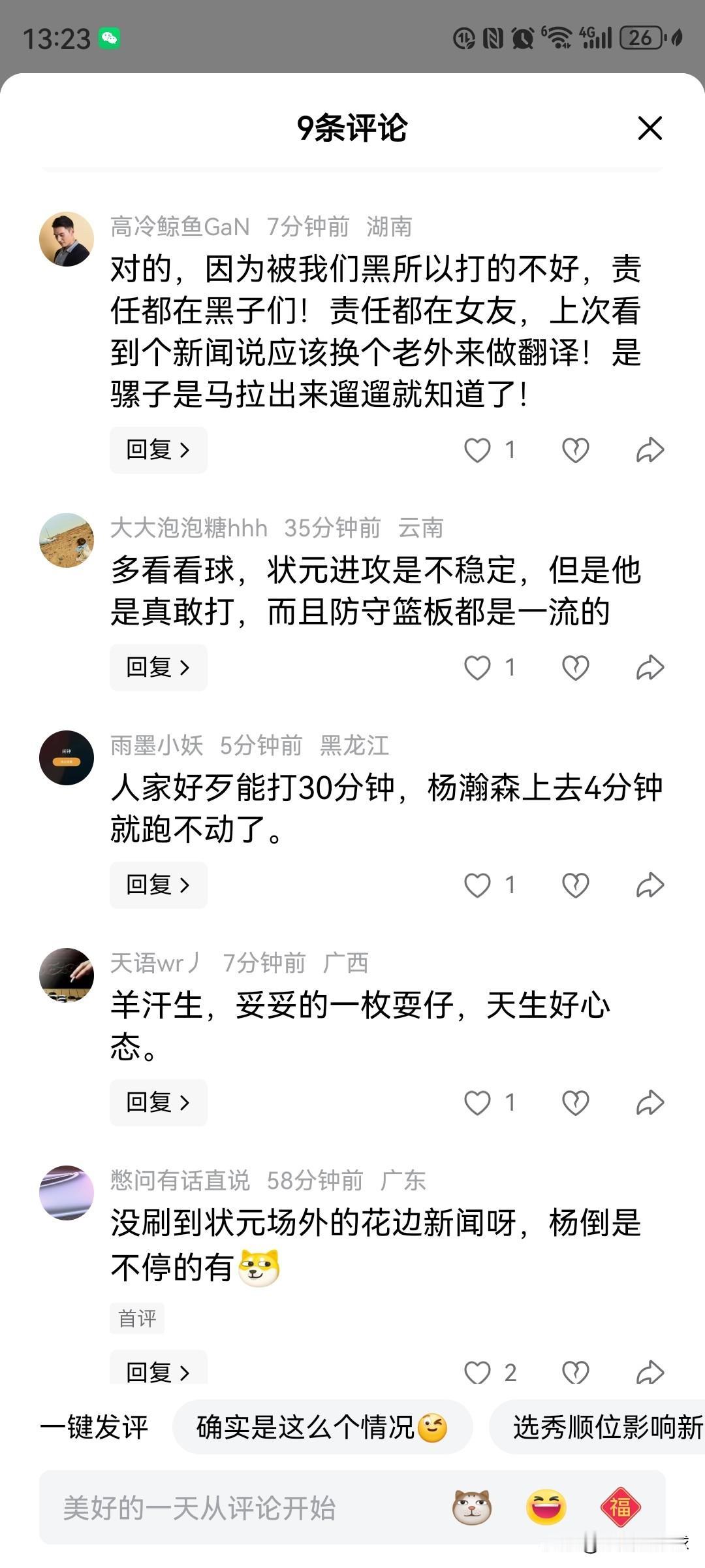 杨瀚森被下放!评论区骂声一片 杨瀚森被下放到发展联盟锻炼,看到几遍文章,评论区全是骂杨瀚森的,各种各样的攻击点,找的非常刁钻,因为被黑才会打的不好、放空跑30分钟能跟上也不至于下放、上场4分钟就跑不动了…… 说白了都是表现不好惹的祸,表现不好连呼吸都是错的,这其实就和国内的家长看自己的小孩一样,自己考不上985,但是总希望子女考上985,考不上就是你不努力,中国男篮最近十年跌落谷底了,好不容易遇到杨瀚森首轮被选中,很多球迷都把他当成了中国男篮的救世主,所以表现不好打自己的脸了,所以调转枪头马上冷嘲热讽。