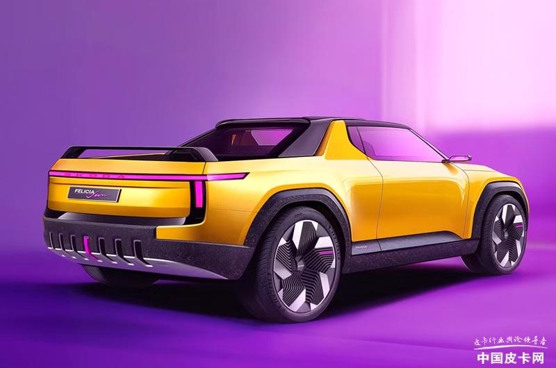 这款轿车与皮卡的融合体,灵感源自1997-2000年的Felicia Fun(仅产4216台,全明黄,轿车头+开放货箱)。它延续经典配色与结构,又加入简约锋利灯组、贯穿灯带等现代元素,内饰由Julien Petitseigneur设计,大屏 + 紫黄点缀,融复古与Modern Solid语言。官方暂不量产,意在传递品牌未来发展方向~你觉得怎么这设计怎么样?