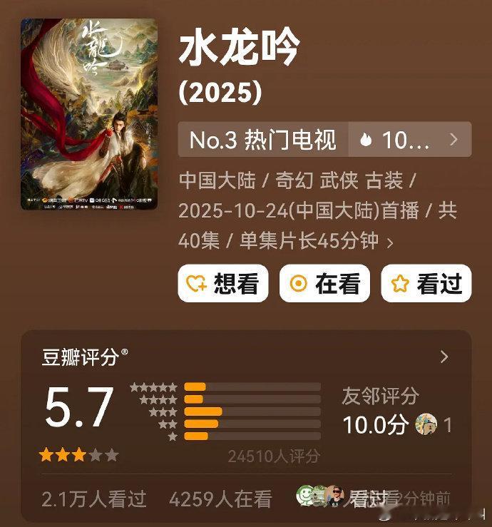 《水龙吟》:豆瓣开分5.7,由罗云熙领衔主演,肖顺尧、敖子逸、方逸伦、包上恩、陈瑶、林允等主演。