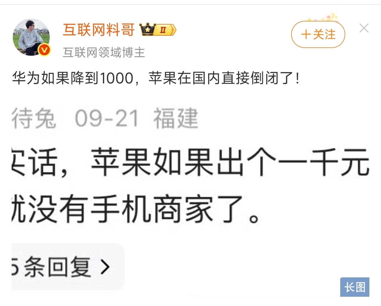 料哥说华为要是出1000的手机,苹果在国内直接倒闭,他真的很有见地,话说华为出过
