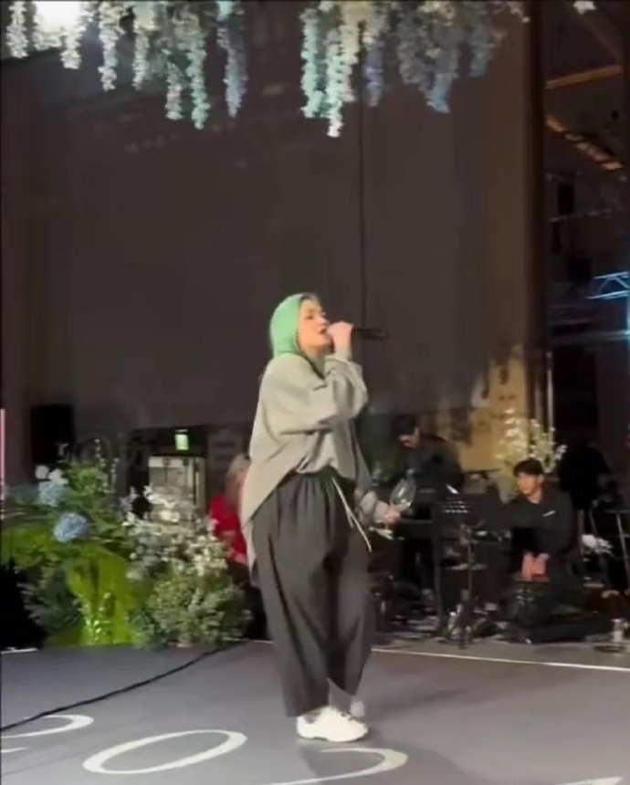 47岁范晓萱出席萧敬腾林有慧婚礼,上台献唱,绿发抢镜成焦点!