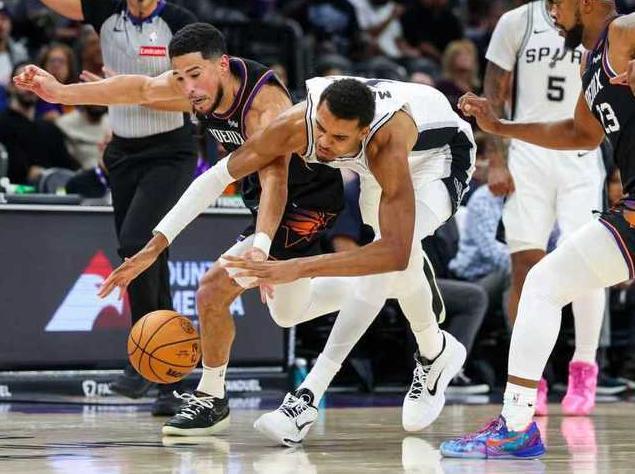 大爆冷!马刺赛季首败 北京时间11月3日,NBA常规赛迎来马刺和太阳的比赛!这场本该失去悬念的比赛,却爆出了冷门!赛前,马刺以五战全胜的强势表现跻身西部第二,仅次于7胜0负的雷霆!不过,尽管马刺之前所遇对手整体实力不算强劲,但球队在攻防两端展现出的整体性仍值得称道。场均118.2分的进攻输出虽暂列联盟第12,但在文班亚马坐镇的内线引领下,球队防守端表现尤为亮眼——场均仅失103.8分,高居联盟第一。文班亚马更是打出攻防一体的统治级表现,场均贡献30.2分14.6篮板3.4助攻1.4抢断4.5封盖;卡斯尔与瓦塞尔状态日趋稳定,新秀哈珀的惊艳发挥也为球队注入了全新活力。