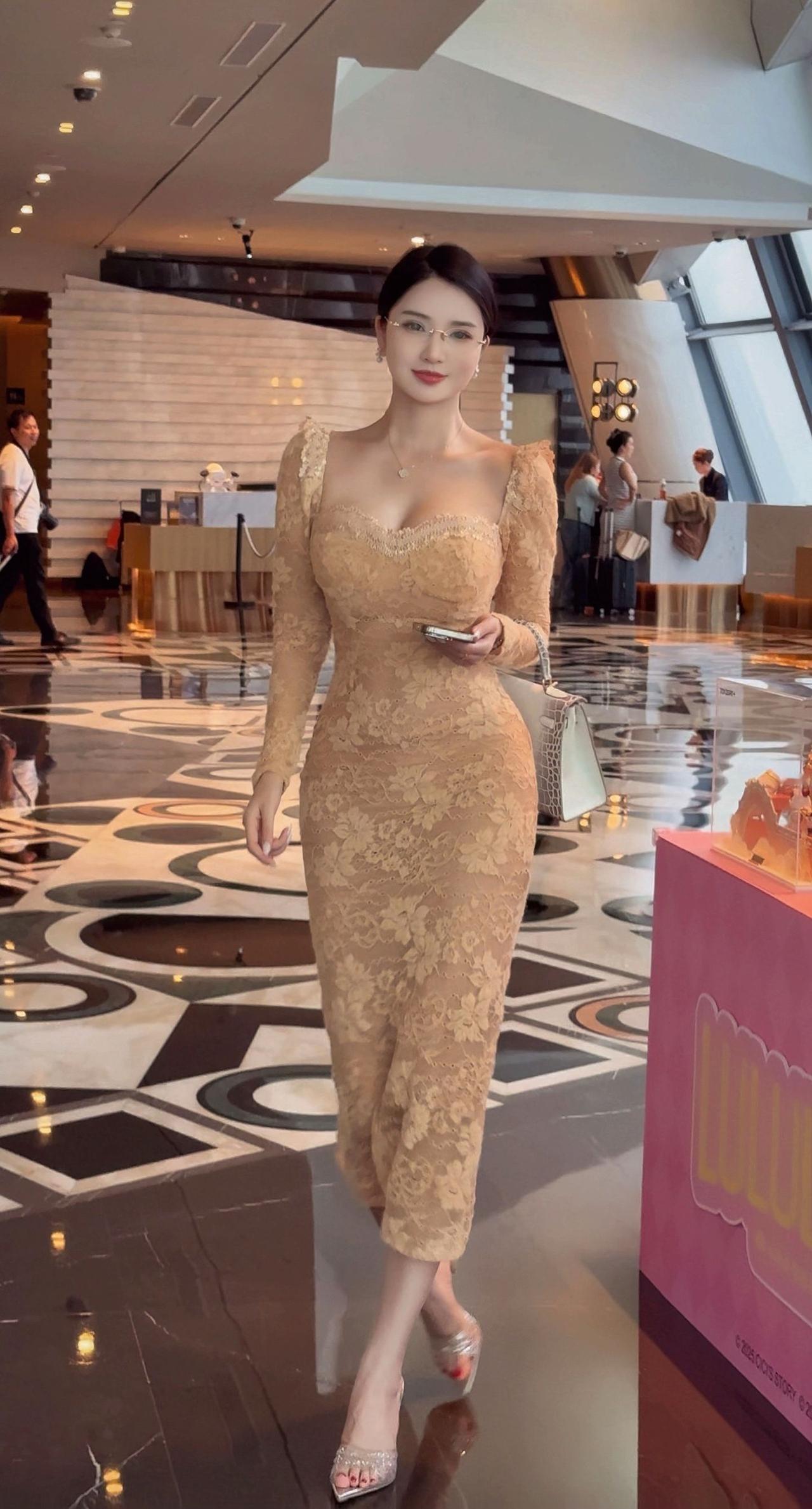 方领蕾丝修身裙,解锁轻熟女的精致氛围感穿搭气质蕾丝包臀裙