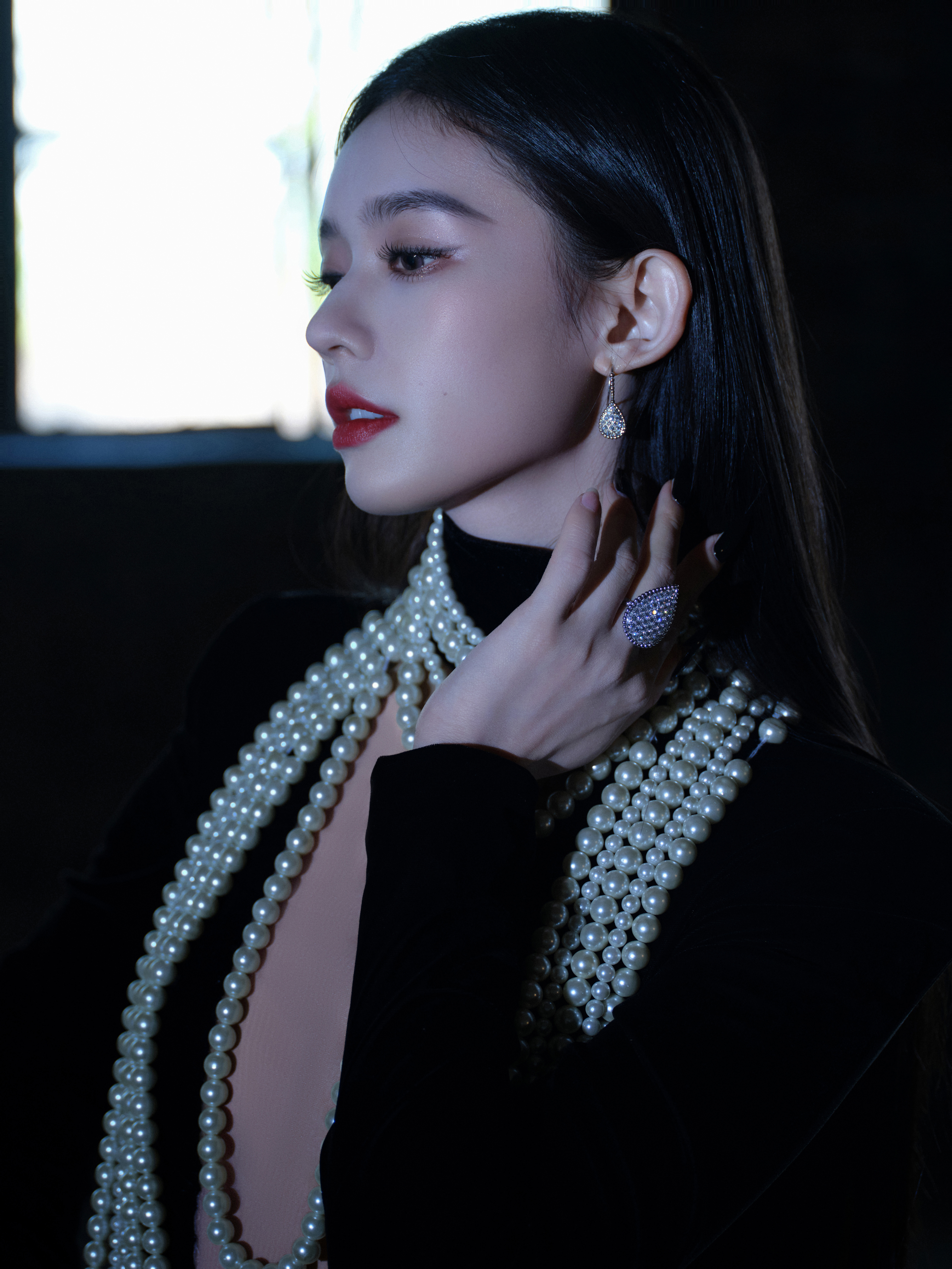 林允珍珠围脖 被林允的珍珠围脖造型美到,饱满珍珠缠绕成围脖,光线下质感绝佳,搭配利落黑礼服,甜酷气质拿捏到位,举手投足都是霸气女王范!