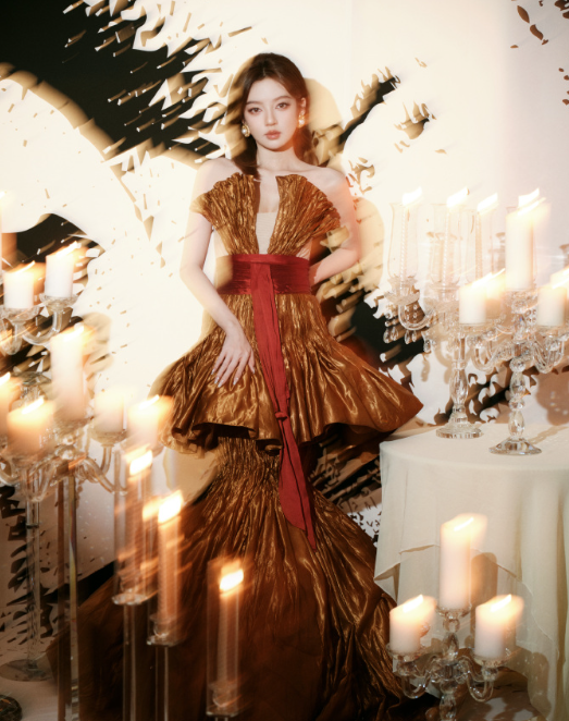 欧阳娜娜的露背红裙,轻纱柔美很可以!