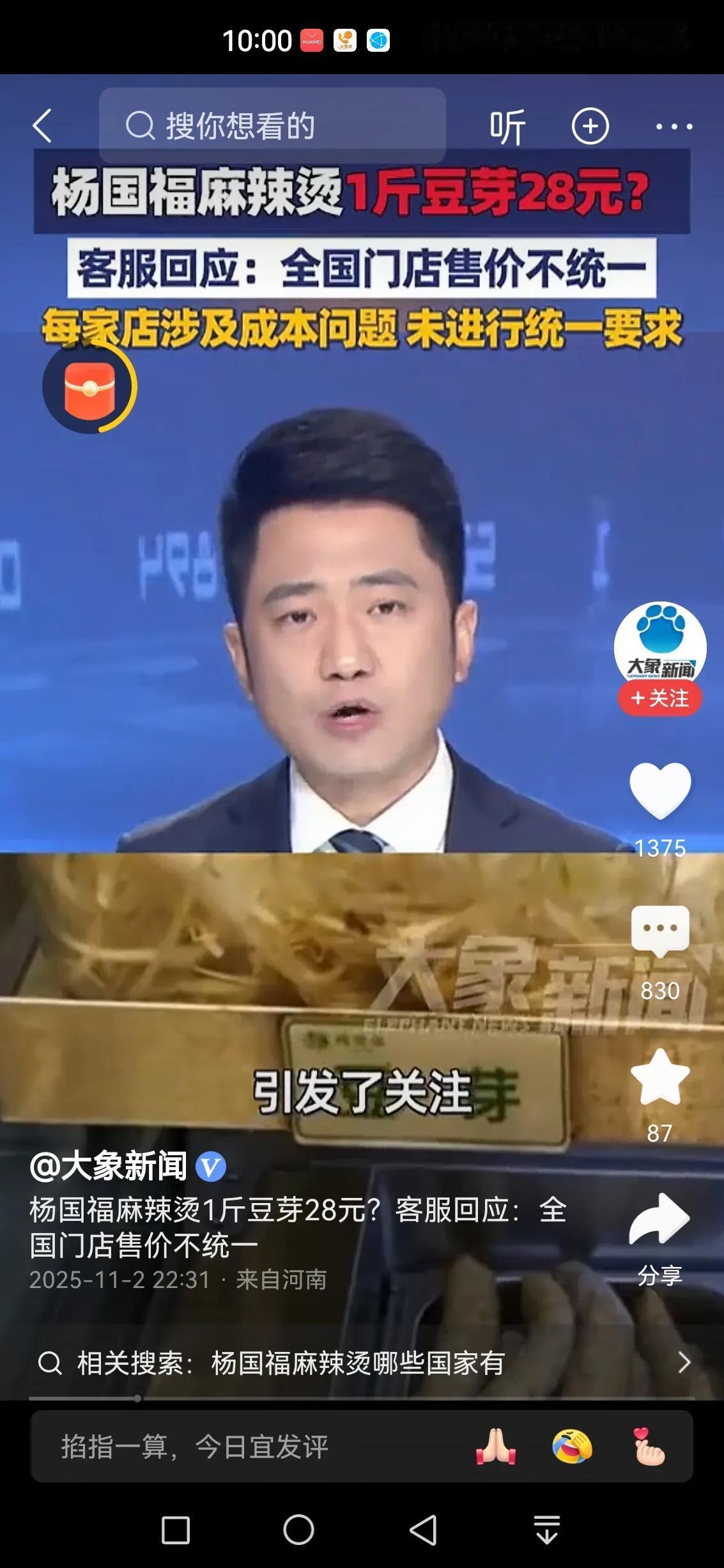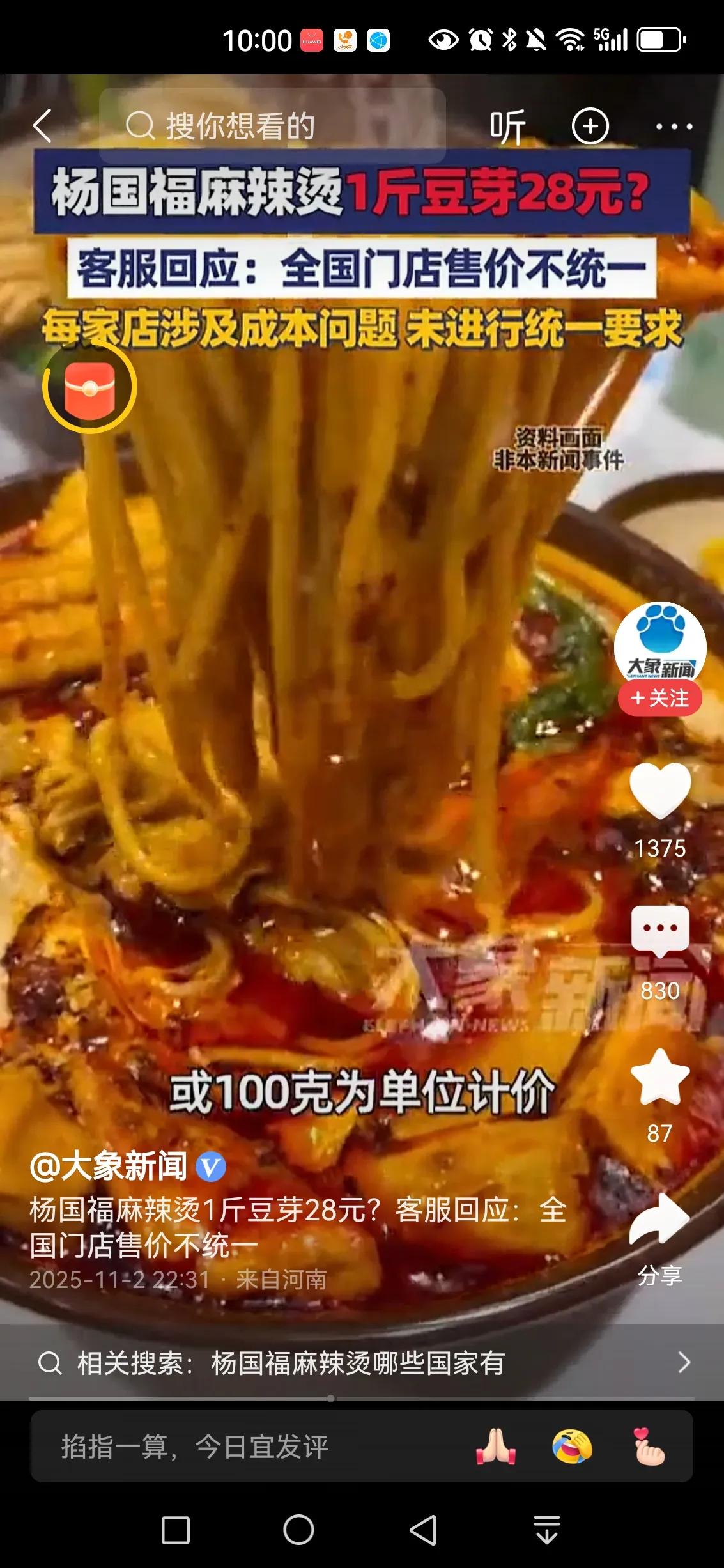 杨国福麻辣烫 何止豆芽这么贵? 他不单纯指的是豆芽吧?他是所有食材一起称重,然后按斤计算,一份麻辣烫不便宜是真的。 现在去杨国福吃顿麻辣烫最少得20多块钱,而且还不一定能吃饱,麻辣烫越来越贵,以前上大学最便宜的时候3.5块一碗,给一个漏斗自己装,那已经是很久远的事情了[捂脸]但是现在真的贵的离谱,翻了十倍。 现在轻易不敢吃麻辣烫,偶尔吃一顿,觉得挺奢侈的[捂脸]因为口袋里的钱不允许[笑哭]
