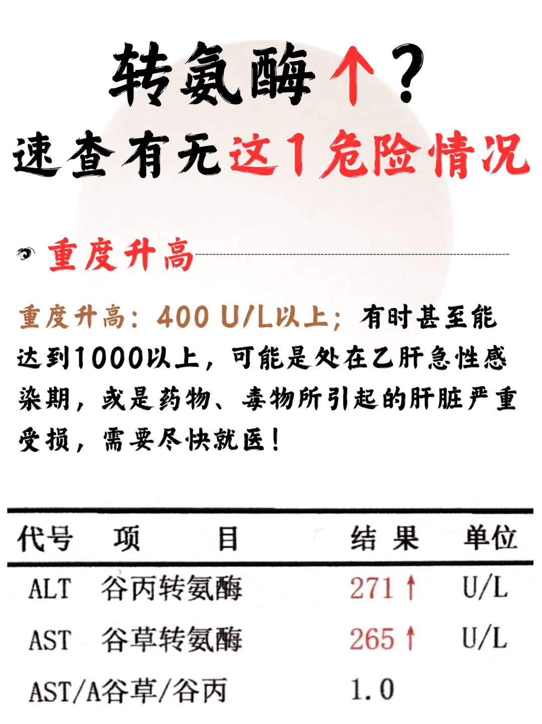 💡怎么办: 先别太焦虑!调整作息和饮食1周后复查最重要!排查是否有乙肝、丙肝、脂肪肝等基础问题。