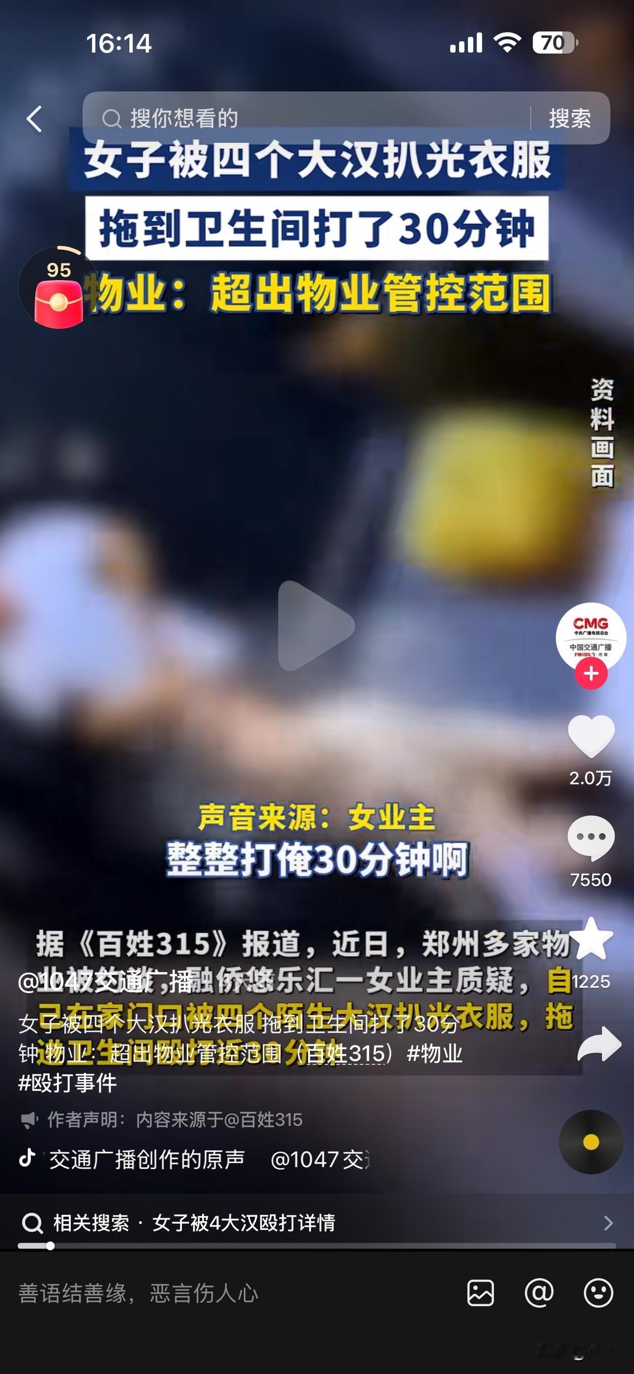 近期某女子被四个大汉拖到卫生间打了30分钟,但物业确说:超出物业范畴。近期郑州一女子举报物业,大家怎么看?