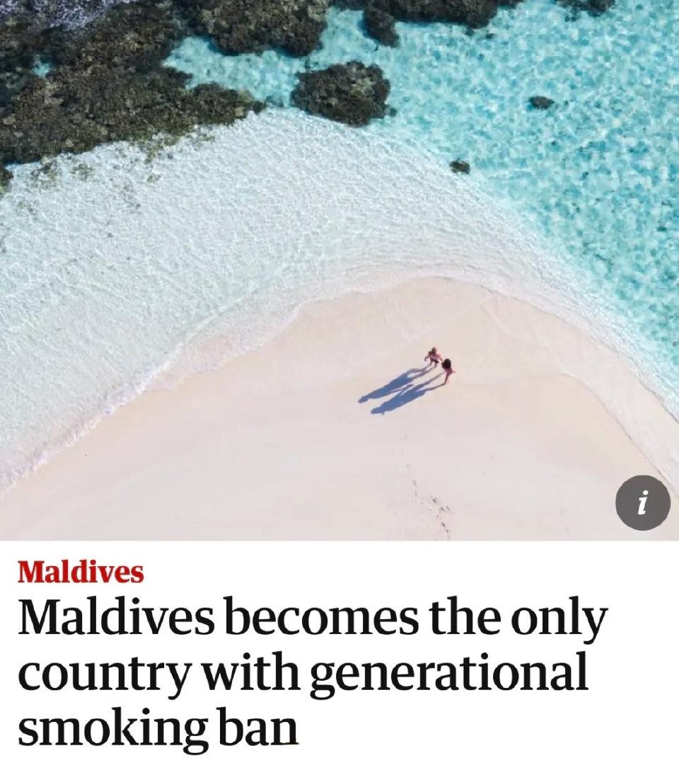 马尔代夫宣布一项“世代禁烟令”,即对出生于2007年1月1日及以后的人员禁烟,这