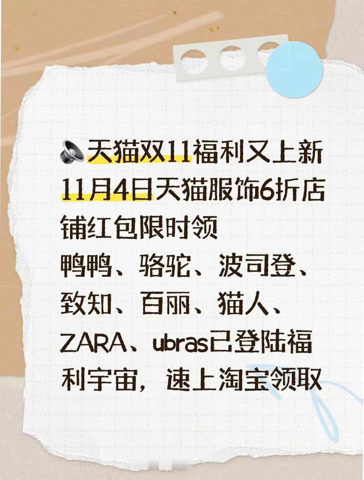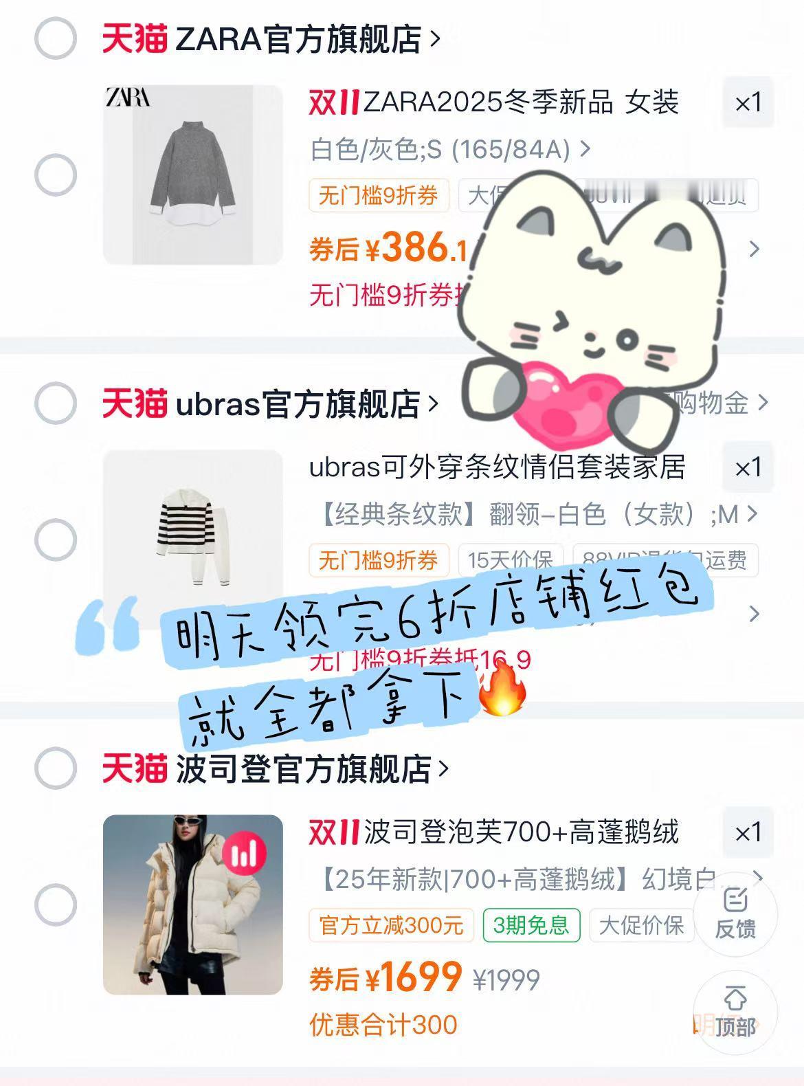 天猫双11降温服饰低至5折 天猫双11才是真优惠 我心心念念的波司登终于来了!6折店铺红包明日上线,14点 18点 20点,准点开抢,即领即用,可叠加88VIP消费券+服饰品类券,一件到手4折起,我的购物车里的波司登、zara、ubras这些大牌这次可以清空啦!