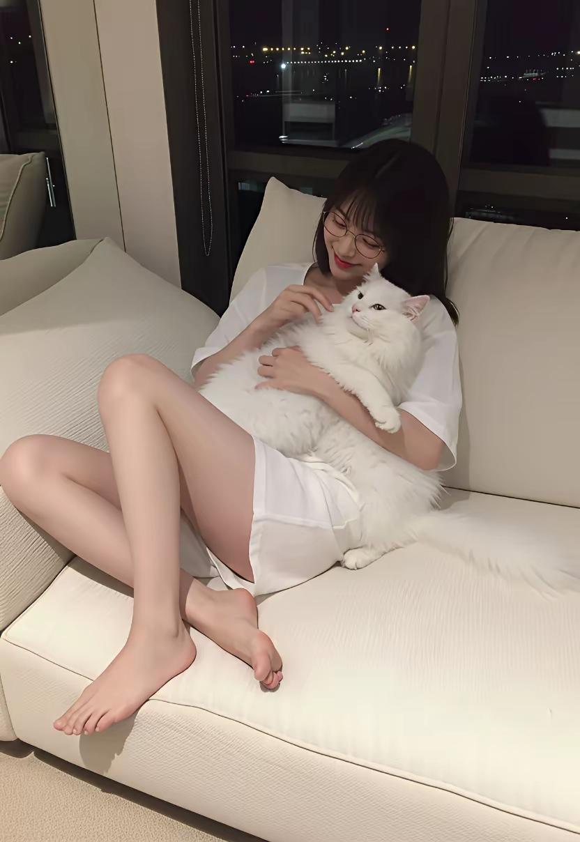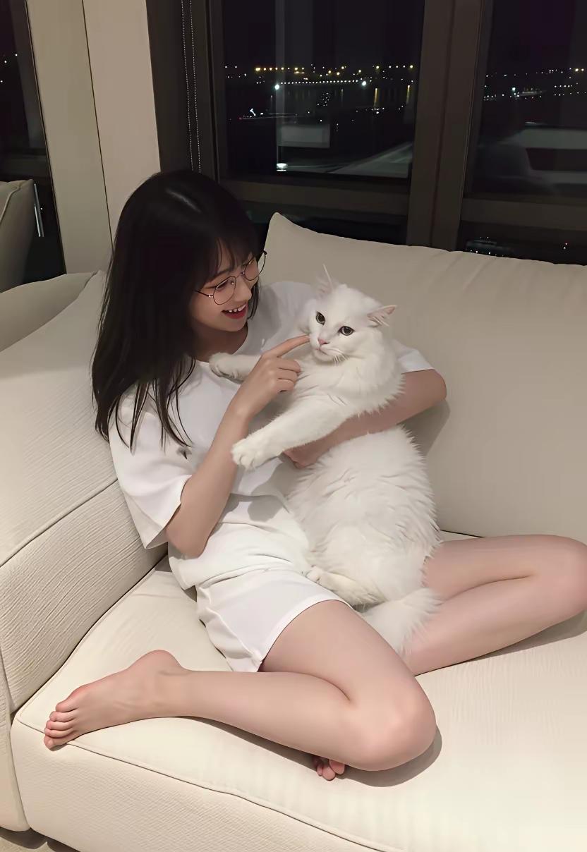 夜晚与爱宠的温馨时光🌃🐱💕你们会在网络上找聊天搭子吗? 穿衬衫牛仔裤的女孩咋那么好看