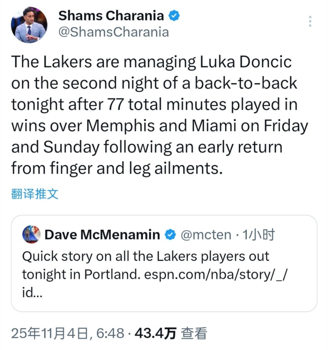 东契奇因为背靠背打的时间太长,湖人今天要轮休他了