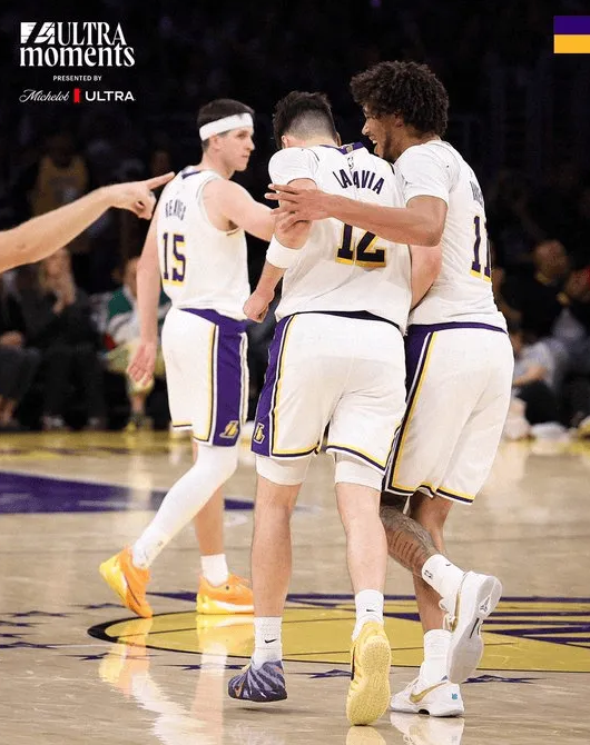 NBA常规赛,湖人主场战胜热火,取得一波三连胜。 此役过后,湖人以5胜2负排名西部第三。 赛后,湖人官方晒出球员赛场照:里夫斯、海斯、拉拉维亚出镜。